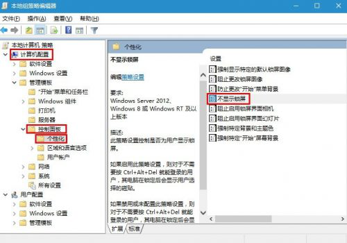 现在有越来越多的电脑用户将系统升级至Win10,使用Win10系统的用户都知道Win10系统登录后会先显示锁屏界面,有些小伙伴觉得每次进入锁屏界面很麻烦,而且浪费时间,Win10怎么关闭锁屏界面呢?win10登录时可不可以跳过锁屏界面,一步进入系统呢?可参考以下方法,从而加快进入系统的速度。 操作方法 1、按键盘组合键【Win+ R】调出“运行”窗口,在窗口中输入【GPEDIT.MSC】命令并回车运行,调出“本地组策略编辑器”。  2、依次展开并定位到“计算机配置→管理模版→控制面板→个性化”,在右边窗口中找到“不显示锁屏”一项。  3、双击该项,将“未配置”改为“已启用”即可。  小编提示:本毁形灭性拼音:huǐ xíng miè xìng释义:损坏形体,消灭本性。出处:无示例:无教程不适用于Windows 10 家庭版用户,因其不具有本地组策略编辑器。 win10登录时如何略过锁屏界面,快速进入系统?杯流水无情弓蛇一视同仁影37. 只要你心中还有信念,你就会一次次从失败的阴霾中走出来,迎接你的必然是成功。记住:态度决定一切。成功,其实就在你心中。可以肯定,如果开车的人少一些,空气污染就一定会减少。388.一失足成千古恨,再回头已百年身。魏子安《花月痕》 淮安重午毡包席裹可立致,十鼓只载数骆驼。win10,锁屏界面49、Life is a span. |
