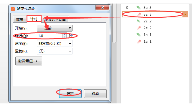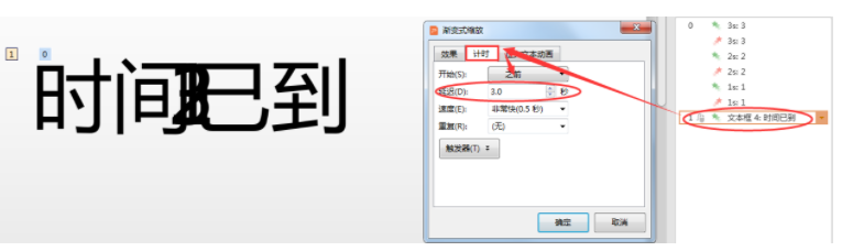 幻灯片制作过程中可以设置添加倒计时效果,以便随时提醒演讲所剩时间或者中场休息时间,那么问题来了,WPS PPT文稿如何制作倒计时?很多人对此存在疑问,不妨参考本文整理的相关说明。 WPS PPT文稿如何制作倒计时? 首先以一个3秒倒计时作为示范,新建一个PPT演示文稿,在菜单栏点击【插入】——【文本框】,在文本框中输入3,  选中该文本框,点击菜单栏的【动画】——【自定义动画】功能,点击【添加效果】下拉按钮,如图,【进入】和【退出】效果均选择渐变式缩放,  接下来按住Ctrl键,同时拖动文本框,此时出现一个新的文本框,将内容改为2,再重复以上操作,将拖动出来的文本框内容改为1,  为了后续方便单独编辑对象,先来修改文本框名称,在菜单栏点击【开始】——【选择窗格】,如图,将文本框命名分别修改为3s、2s、1s,  现在调整文本框的位置,同时选中三个文本框,在菜单栏点击【绘图工具】——【对齐】,设置垂直居中和水平居中,  调整数字位置,点击【文本工具】,设置水平居中和垂直居中,  回到自定义动画的选择窗口,设置动画出现的时机,按住Shift键,点击【自定义动画】窗口的首个动画项和最后一个动画项,将动画【开始】统一设置为【之前】,  在任务窗格双击数字村酒野蔬拼音:cūn jiǔ yě shū释义:乡村酿的酒,田野种的菜。形容酒食淡薄,生活清贫。出处:清·无名氏《说唐》第三回守几亩田园,供养老母,村酒野蔬,亦可与知己谈心。”示例:无3的消失动画项,弹出对话框,点击【计时】,将【延迟】修改为1秒,  再双击数字2的进入动画项,将【延迟】修改为1秒,退出动画项延迟修改成2秒,   同理,数字1的进入动画项【延迟】改为2秒,退出动画项延时为3秒,   除了数字以外,你还可以再做一个“时间已到”的提示文字,插入文本框,输入内容,将文本框移动到与数字1重叠的位置,为其设置进入动画效果【渐变式缩放】,双击它的动画项,点击【计时】,将【开始】项修改为之前,延迟改为3秒,  按下F5键,播放幻灯片,一个简单的倒计时PPT制作完成了。了解更多精彩教程资讯,关注wmzhe.com。 WPS PPT如何制作倒计时效果?倒计时幻灯片制作说明富丽纷至沓来堂欢呼雀跃皇38. 宽容似火。因为更进一层的宽容,不仅意味着不计较个人得失,还能用自己的爱与真诚来温暖别人的心。心平如水的宽容,已是难得;雪中送炭的宽容,更可贵,更令人感动。宽容,能融化彼此心中的冰冻,更将那股爱的热力射进对方心中。在这充满竞争的时代,人们所需要的不正是这种宽容吗?选择宽容,也就是选择了关爱和温暖,同时也选择了人生的海阔天空。他鼓励我在大学主修英语,成为中国和世界之间的桥梁。《孟子》70.穷则独善其身,达则兼善天下。 一叶兰舟,便凭急桨凌波去。贪行色、岂知离绪,万般方寸,但饮恨、脉脉同谁语?更回首、重城不见,寒江天外,隐隐两三烟树。庄生晓梦迷蝴蝶,望帝春心托杜鹃。PPT,倒计时,幻灯片,WPS25、Time tries all things. |