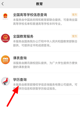 日常生活中,说到查询个人学历,大家一般是选择各种平台或者网站,现在微信接入了学信网小程序,我们可以直接通过微信查询学历。微信中怎么查询学历呢?请看文章说明。 如何使用微信查询个人学历? 打开手机微信,进入界面,点击下方的【我】——【支付】,  进入支付中心,点击【城市服务】功能,如图,滑动找到【教育】选项,   点击【教育】,选择【学历查询】,出现弹窗提示,点击【运行】,   打开学信网小程序,输入证书编号、姓名、验证码,然后点击【免费查询】,即可查询学历。  了解更多精彩教程资讯,关注wmzhe.com。 -