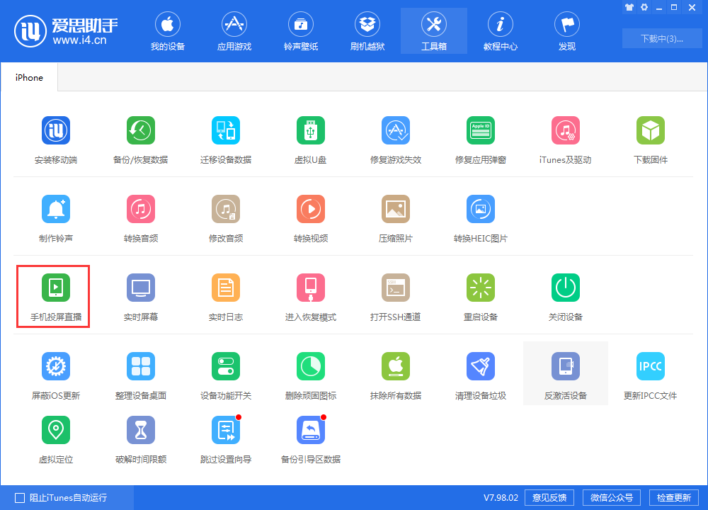 对于iPhone用户而言,如果大家想将手机投屏到电脑,可以通过PC版爱思助手进行实现,而且操作方法也简单。最近有小伙伴反映,爱思助手投屏直播功能无法使用,不知道是什么原因,那么今天小编就来介绍相关解决方法。 如何使用爱思助手手机投屏直播工具? 第一步 在电脑中打开爱思助手,进入界面,点击【工具箱】——【手机投屏直播】,  第二步 启用手机投屏直播功能,首次打开会弹出安全警报,点击【允许访问】;如果你没有遇到警报,可以选择忽视,  允许防火墙访问,AirPlayer投屏工具就会打开,然后记住窗口里显示的【i4AirPlayer-xxxxx】,  第三步 确保iOS设备和电脑处于同一个局域网(需要连接同一个路由器),查看电脑的IP地址,点击开始菜单, 查找【运行】,输入cmd,回车,然后输入ipconfig,按回车 ,如下图,电脑IP是192.168.1.222,  查看iPhone手机上的IP地址,进入设置界面,点击无线局域网 ,点击正在连接的WiFi,进入详情,如下图,192.168.1.222和192.168.1.113是在一个局域网,  第四步 从iPhone手机屏幕底部向上滑动,打开设备控制中心,点击【屏幕镜像】,iPhoneX在屏幕右上角向下滑动打开控制中心,找到对应的镜像名称连接,即可实现投屏。   如果无法连接使用投屏功能,可能遇到两个问题: 1、点击屏幕镜像后提示无法连接到“xxxxxx”, 2、在屏幕镜像里无法找到镜像名称, 遇到上述两个问题,首先打开控制面板,点击【系统与安全】——【Windows Defender防火墙】——【启用或关闭Windows Defender防火墙】,选择【关闭Windows Defender防火墙】;  接着进入【允许程序或功能通过Windows Defender防火墙】,找到【爱思助手AirPlayer投屏工具】和【Bonjour】,查看【专用】和【公用】是否勾选,如果没有,则需要勾选;   若列表中找不到【爱思助手AirPlayer投屏工具】,点击【允许运行另一程序】,浏览找到爱思助手客户端安装目录添加【i4AirPlayer.exe】,添加完成,重新连接;   【Bonjour】添加方法同上,找到路径C:\Program Files\Bonjo25. 在坚强的世界里,我有活力;在坚强的世界里,有我那最真挚的心;在坚强的世界里,我可以冲破风浪迎接一个新的世界!ur\mDNSResponder.exe,添加即可;   完成以上操作,应该可以解决无法使用爱思助手投屏直播功能的问题,了解更多精彩教程资讯,关注wmzhe.com。 -