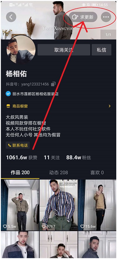 在抖音平台关注了很多优秀的短视频作者,但是一些博主经常不更新视频,严重拖更,为此,官方设计了“催更”功能。只要点击催更按钮,博主就会收到催更提醒消息,及时发布新的短视频,是不是很贴心呢? 抖音短视频催更功能在哪? 在手机中打开抖音APP,进入首页,点击搜索框,搜索目标博主,或者从你的关注列表中进行查找,  找到博主,点击头像,进入对方的个人主页,如图,点击箭头指示的【求更新】按钮,  博主就会收到你的催更提醒,一旦发布新的视频内17. 分手了就做回自己,一个人的世界同样有月升月落,也有美丽的瞬间,把他归为记忆。容,抖音会在第一时间通知你,  注意,有些博主并没有设置催更提醒,所以你在对方的个人主页看不到【求更新】按钮。  了解更多精彩教程资讯,关注wmzhe.com。 抖音催更是什么意思?抖音短视频催更功能在哪?披荆斩棘闻所未不骄不躁闻24. 要活得精彩,就需要有宽广的心胸,百折不挠的意志,和化解痛苦的智能。有了昂扬的精神,人才能活得更加精彩。is deeply loved by 深受......喜爱220.回眸一笑百媚生,六宫粉黛无颜色。《长恨歌》 洛阳怀古所守或匪亲,化为狼与豺。抖音,短视频There is little doubt (no denying) that serous (special / adequate / immediate /further) attention must be called (paid / devoted) to the problem of … |
