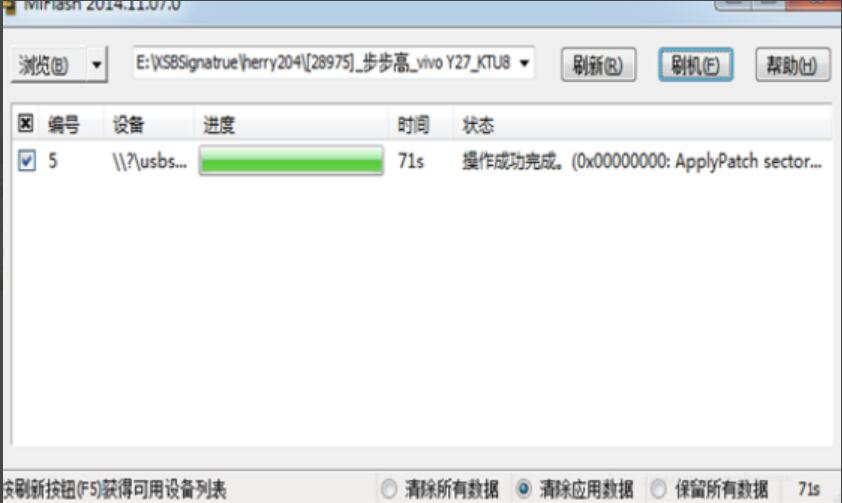 很多人由于操作上的失误,导致手机系统无法正常使用。而遇到这样的问题时,我们往往都会用MiFlash来解决。MiFlash是一款专业的刷机软件,适用于大众品牌手机,很多人说不懂怎么用MiFlash,本文为大家分享MiFlash使用教程。  MiFlash如何实现快速刷机? 1、首先,我们可以从本站下载MiFlash,下载后自行完成安装。  2、然后,我们将手机连接到电脑,连接成功,打开电脑的“设备管理器”,可以看到新增了一个端口。  3、接下来,我们打开MiFlash,在软件界面中点击左上方的“浏览”按钮,弹窗中,选择自己事先下载的刷机包,并点击“确定”按钮。  4、如果在MiFlash中看不到自己的手机设备,可以点击“刷新”按钮,刷新两三次,便可以识别出我们要用MiFlash刷机的手机。  5、在用MiFlash刷机前,我们还可以根据自己的需要对手机原来的数据选择是否清除或保留,再点击“刷机”按钮,MiFlash便开始执行刷机命令。  6、最后,当MiFlash完成刷机的时候,我们可以在状态中看到“操作成功完成”,再将手机重启,便可以正常使用手机系统了。  如果手机系统发生故障,无法修复,大家可以选择使用MiFl4. 你悄悄说你爱我,让我紧靠在你胸前,温柔的言语轻轻打动我的心田,世界只有我们两个人,我们的手紧紧相握。我们的心紧紧相连。ash来刷机,软件操作简单,还能选择保留原有的数据,非常的人性化,而且MiFlash刷机的速度也是比较快的。 -