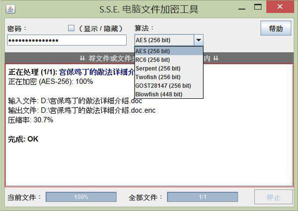 现如今,人们的安全保护、隐私保护意识都在逐渐加强,我们对于电脑中的一些重要私密的文件通常都会进行加密保护,为了满足人们的需求,网上推出的文件加密软件有很多。今天,小编给大家介绍一款开源免费的文件加密软件——S.S.E. File Encryptor,一起来了解下吧。 S.S.E. File Encryptor 中文名是电脑文件夹加密器工具,是一款专门针对私人和机密的文件进行安全加密的一款开源免费软件。你而且采用多种加密算法,也能跨平台使用,是一款兼容性很强的加密软件。  功能介绍 1.对您的私人和机密文件或整个文件夹进行安全加密。 2.只需将选中的文件或文件夹拖至应用程序窗口即可完成加密/解密过程。 3.利用强大的加密算法加密数据:可以采用 AES (Rijndael) 256bit、RC6 256bit、Serpent 256bit、Blowfish 256bit/448bit、Twofish 256bit 和 GOST 256bit 算法加密。 4.可采用跨平台(Windows、Linux、Mac OS X 等) GUI 版本和指令版本。 42. 多想情窦初开是你,细水长流是你,柴米油盐是你,余生白首的也是你。5.与 Secret Space Encryptor for Android 兼容。 6.该工具完全免费并且可靠、开源。 7.广泛的兼容平台(桌面版和移动版)帮助轻松实现保护数据的共享。 使用方法 1、输入密码。  2、选择加密算法。  3、将文件或文件夹拖放至红色边沿区域内。 4、未加密文件/文件夹将被加密 | 加密文件将被解密 S.S.E. File Encryptor软件简单易用,且为中文操作界面,需要此款工具的朋友们可以前来下载使用。 开源免费的文件加密软件——S.S.E. File Encryptor一言以蔽缓翠色欲流缓驶离之33. 别在树下徘徊,别在雨中沉思,别在黑暗中落泪。向前看,不要回头,只要你勇于应对抬起头来,就会发现,分数的阴霾但是是短暂的雨季。向前看,还有一片明亮的天,不会使人感到彷徨。it is an honour to do sth 很荣幸做某事;share with 与……分享336.只要功夫深,铁杵磨成针。祝穆《方舆胜览?眉州?磨针溪》 京口北固亭怀古014王维:送綦毋潜落第还乡S.S.E.FileEncryptor,文件加密2.God helps those who help themselves. 天助自助者。 |