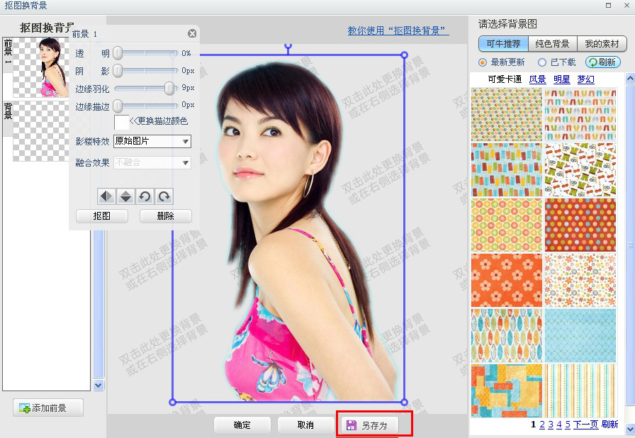 可牛影像是一款简单易用、功能丰富的图片处理软件,用户无需经验可以轻松上手,软件提供了多种照片特效,数秒即可制作出影楼级的专业照片。我们照镜子时利用光的反射形成等大相反的画面,这就是镜像效果,可牛影像怎么制作人物镜像效果呢?一起来了解下吧。 先看一下效果图:  可牛影像怎么制作人物镜像效果? 第一步、打开一张图片执行编辑--抠图换背景  第二步、开始抠图  第三步、抠完图后设置一下边缘羽化值  第四步、设置好后把这张抠好的图保存一下,保存成png格式的  第五步、选择一张提供的壁纸,在这里我选的是梦幻的,选好后把人物大小调整的和背景融合  第六步、点击“添加前景”,把刚才保存的那张38. 有一种爱,明明是深爱,却说不出来。有一种爱,明明想放弃,却无法放弃。有一种爱,明知是煎熬,却又躱不开。有一种爱,明知无前路。心却早已收不回来。图打开  第七步、把添加的一张前景人物拖反调整好大小位置点确定  第八步、到动感闪图的动感饰品中加一些修饰的多彩文字如图  保存就完成了 简单几步,即可用可牛影像将照片制作出人物镜像的效果凤毛麟角居漫天飞雪功自傲9. 缘分是什么?有人问隐士。隐士答:缘是命。此人听的糊涂,问高僧。高僧说:缘是前生的修炼。这人不解前生,就问佛。佛不语,手指天边的云。这人看去,云起云落,随风东西,顿悟:缘不可求,缘如风,风不定。云聚是缘,云散也是缘。世间万物皆因缘而生,缘聚则物在;缘散则物灭。29. We should take an active part in sports and outdoor activities frequently. 2014.陕西109.若要人不知,除非己莫为。《汉?枚乘?上书谏吴王》 闷来弹鹊,又搅碎、一帘花影。漫试著春衫,还思纤手,熏彻金猊烬冷。033韦应物:送杨氏女可牛影像The mere fact that ticket sales in recent years for screenplay-based movies have exceeded those for book-based movies is insufficient evidence to conclude that writing screenplays now provides greater financial opportunity for writers. |