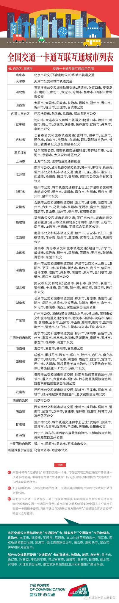 上海交通联合卡可以在哪些城市使用?在最近,上海发布了新一代的上海交通卡,此次上海交通卡属于交通联合版,在全国280个城市均可使用,那具体可以在哪些城市使用,下面就和小编一起来看看吧!  在9月15日,新一代上海交通卡(交联版)正式发售,可刷280多城市,在上海使用可享本地交通优惠。此卡为新一代普通交通卡,非纪念卡,具有公共交通支付功能,如果想知道具体有哪些城市可以使用,可以关注微信公众号“交通联合官方服务号”查询。 北京市:北京市公交(不含定制公交)和城市轨道交通; 天津市:天津市公交和城市轨道交通; 河北省:石家庄市公交和城市轨道交通;承德市、张家口市、秦皇岛市、唐山市、廊坊市、保定市、沧州市、衡水市、邢台市、邯郸市公交; 山西省:太原市、大同市、阳泉市、长治市、晋城市、朔州市、晋中市、忻州市、临汾市、运城市、吕梁市公交; 内蒙古自治区:呼乎和浩特市、包头市、乌海市、鄂尔多斯市公交; 辽宁省:沈阳市、大连市公交和城市轨道交通;营口市、锦州市、朝阳市、鞍山市、盘锦市、铁岭市、葫芦岛市、辽阳市、丹东市、阜新市公交; 吉林省:长春市公交和城市轨道交通;吉林市、四平市、辽源市、通化市、白山市、松原市、白城市、延边朝鲜族自治州、长白山管委会公交及全省区县公交; 黑龙江省:哈尔滨市公交、城市轨道交通和轮渡;齐齐哈尔市、七台河市、伊春市、大兴安岭地区公交; 上海市:上海市公交、城市轨道交通和轮渡; 江苏省:南京市公交、城市轨道交通和轮渡;苏州市、无锡市、徐州市、常州市公交和城市轨道交通;南通市、连云港市、淮安市、盐城市、扬州市、镇江市、泰州市、宿迁市公交及全省区县公交; 浙江省:杭州市公交、城市轨道交通和水上巴士;宁波市公交和城市轨道交通;温州市、湖州市、嘉兴市、台州市、绍兴市、衢州市、金华市公交; 安徽省:合肥市公交和城市轨道交通;淮北市、蚌埠市、淮南市、滁州市、六安市、马鞍山市、阜阳市、芜湖市、宿州市、铜陵市、安庆市、黄山市、池州市、亳州市、宣城市公交; 福建省:福州市公交和城市轨道交通;厦门市公交、城市轨道交通和轮渡;莆田市公交和轮渡;漳州市、泉州市、三明市、南平市、龙岩市、宁德市、平潭综合实验区公交; 江西省:南昌市公交和城市轨道交通;赣州市、吉安市、九江市、景德镇市、萍乡市、新余市、鹰潭市、宜春市、上饶市、抚州市公交; 山东省:济南市、青岛市公交和城市轨道交通;烟台市、济宁市、威海市、临沂市、德州市、滨州市、菏泽市、枣庄市、聊城市维坊市、东营市公交; 河南省:关州市公交和城市轨道交通;许昌市公交和水上巴士;洛阳市、平]顶山市、安阳市、新乡市、焦作市、商丘市、信阳市、驻马店市、襆阳市、开封市、南阳市、漯河市、三门峡市、鹤壁市、周口市、济源市公交; 湖北省:武汉市公交和轮渡;宜昌市、黄石市、咸宁市、襄阳市、鄂州市、十堰市、荆门市、随州市、黄冈市、潜江市、天门市公交; 湖南省:长沙市公交和城市轨道交通;株洲市、湘潭市、衡阳市、邵阳市、岳阳市、常德市、张家界市、益阳市、郴州市、永州市、怀化市35. 往事再美好,都已经尘封,人生,可以痛苦,更要懂得追求快乐。在这个世间,有很多东西是免费的。比如阳光,爱情,友情,梦想。所以,我们应当持有一颗平常心,珍惜自己的过去,满意自己的现在,乐观自己的未来,那你就是最幸福的人。、娄底市、湘西土家族苗族自治州公交; 广东省:广州市公交、城市轨道交通和水上巴士;佛山市、深圳市公交和城市轨道交通;珠海市、韶关市、河源市、茂名市、肇庆市、惠州市、汕头市、汕尾市、中山市、潮州市、揭阳市、云浮市、梅州市、清远市、江门市、东莞市、湛江市、阳江市公交; 广西壮族自治区:南宁市公交和城市轨道交通;柳州市、钦州市、百色市、贺州市、来宾市、桂林市、北海市、防城港市、贵港市、玉林市、崇左市、梧州市、河池市公交; 海南省:海口市、三亚市、儋州市、文昌市公交; 四川省:成都市、攀枝花市、雅安市、乐山市、泸州市、内江市、南充市、遂宁市、德阳市、广元市、绵阳市、眉山市、自责市、宜宾市、巴中市、达州市、阿坝藏族羌族自治州、甘孜藏族自治州、凉山彝族自治州、广安市、资阳市公交; 贵州省:贵阳市公交和城市轨道交通;黔南布依族苗族自治州、毕节市、遵义市、六盘水市、铜仁市、黔东南苗族侗族自治州、黔西南布依族苗族自治州公交; 云南省:昆明市公交和城市轨道交通;楚雄市、玉溪市、保山市、曲靖市、红河哈尼族彝族自治州、迪庆藏族自治州公交; 西藏自治区:拉萨市公交; 陕西省:西安市公交和城市轨道交通;宝鸡市、成阳市、铜川市、渭南市、延安市、汉中市、安康市、榆林市、商洛市、韩城市、杨凌示范区公交; 甘肃省:兰州市公交、城市轨道交通和水上巴士;武威市、张掖市、酒泉市、金昌市、陇南市、平凉市、庆阳市、白银市公交; 青海省:西宁市、海东市、海西蒙古族藏族自治州、玉树藏族自治州、黄南藏族自治州公交; 宁夏回族自治区:银川市、固原市、吴忠市、石嘴山市公交; 新疆维吾尔自治区:乌鲁木齐市、哈密市公交;  以上就是上海交通联合卡可以在哪些城市使用的全部内容了,希望以上内容对您有所帮助! 上