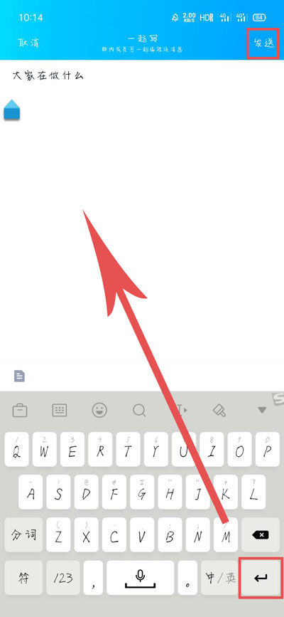 qq一起写在哪里?在手机QQ中,有一个一起写功能,类似于接龙功能,那我们怎么开启一起写功能呢,在哪里开启一起写玩法,qq一起写在哪里,下面就和小编一起来看看吧! 1、首先打开一个QQ群聊,首先我们需要发送一个7. 当我长大了,妈妈就变老了,我要给妈妈做饭,扶妈妈走路,因为,我是妈妈生的,吃妈妈的奶水长大的!一起写的主要内容,也可以由其他成员发送,例如:大家在做什么;  2、然后长按“大家在做什么”这个消息,菜单中选择【一起写】;  3、接着会自动跳转到一起写页面,在输入框中使用键盘的【回车键】换行,输入你想要写的内容,点击【发送】;  4、最后在群聊页面,就会显示我们发送的一起写内容,同时消息左下角会显示【一起写】;  5、其他群成员想要加入一起写, 也可以长按选择一起写,使用回车键换行参与即可(也可以不换行参与)。 以上就是qq一起写在哪里的全部内容了,希望以上内容对您有所帮助! -