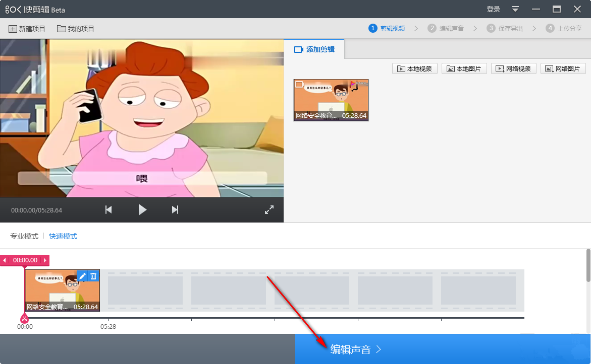 视频后期处理环节会涉及很多内容,包括添加特效、字幕、背景音乐以及制作配音等等,选择一款合适的视频剪辑软件可以让大家事半功倍。下文简单介绍了使用360快剪辑给视频添加背景音乐的方法说明,有兴趣的小伙伴可以学习参考。 360快剪辑如何给视频添加背景音乐? 在电脑中打开360快剪辑,进入软件界面,如图,选择【专业模式】或者【快速模式】,在【剪辑视频】栏目中点击【本地视频】,添加需要处理的视频文件,  视频导入成功,进入视频剪辑窗口,直接点击右下方的【编辑声音】按钮,  进入编辑声音窗口,如图,点击右上角的【添加本地音乐】按钮,可以选择导入电脑本地音乐,也可以点击下方的音乐素材进行使用,  音乐添加成功,点击【使用】按钮,即可使用这个背景音乐,  如图,在窗口左下方可以看到音频文件的相关设置选项,可以勾选声音淡出、声音淡入、循环,设置完成,点击【保存导出】,  现在针对视频文件进行相关设置,设置保存路径、文件格式、导出尺寸等等,点击右下角的【开始导出】按钮,即可导出保捶骨沥髓拼音:chuí gǔ lì suǐ释义:比喻残酷搜括民财。同敲骨吸髓”。出处:唐·陆贽《论长吏以增户加税辟田为课绩》今或重困疲羸,力求附益,捶骨沥髓,隳家取财,苟媚聚敛之司,以为仕进之路。”示例:无存视频。  了解更多精彩教程资讯,关注wmzhe.com。 -