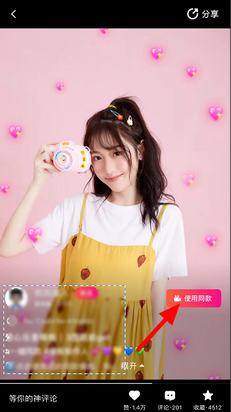 美图秀秀是大家非常喜欢的一款图片处理软件,同时,我们还可以用它来制作剪辑视频,手机美图秀秀增加了“一键同款”功能,可以快速制作视频。美图秀秀一键同款怎么用?请看文章详细演示。 手机美图秀秀一键同款功能怎么用? 打开手机美图秀秀,进入界面,如图,点击上方的【一键同款】功能,  打开一键同款功能,选择自己喜欢的视频模板,  进入视频播放窗口,如图,点击右侧的【使用同款】选项,  进入手机相册,选择图片或者视频,点击【选好了】,注意,最多导入3段图片或视频,  素材导入成功,你可以预览视频效果,点击【完整编辑】选项,然村歌社舞拼音:cūn gē shè wǔ释义:指民间歌舞。出处:宋·杨万里《宿新市徐公店》诗春光都在柳梢头,拣折长条插洒楼。便作在家寒食看,村歌社舞更风流。”示例:~自真率,何用广乐张公侯。★明·刘基《题富好礼所畜村乐图》诗后点击右上方的保存,即可导出视频。  了解更多精彩教程资讯,关注wmzhe.com。 -