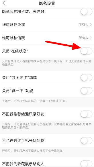 默认情况下,大家在看快手视频作品的时候会自动显示在线状态,如果不想让别人知道自己在线,可以进行设置。快手APP内置隐身功能,下面就来介绍如何设置快手隐身在线。 快手用户如何设置隐身在线? 打开快手APP,进入界面,点击左上角的主菜单按钮,出现侧边栏,点击【设置】选项,   进入设置界面,如图,点击【隐私设置】,找到【关闭在线状态】功能,点击启用,   设置成功,自己关注的人不会看到自己在线45. 上帝对每个人都是公平的,你在失去一些东西的时候,也获得了一些宝贵的东西。人人都要拥有一颗感恩的心。,自己也不能看到别人在线。  了解更多精彩教程资讯,关注wmzhe.com。 -