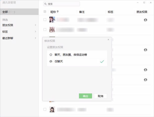 据网友反馈,微信 for Windows 3.0.0 内测版发布,可以在通讯录中批量管理联系人,把小程序添加到桌面使用。另外修复了一些已知问题。目前还未提供大规模下载。那么微信PC版3.0.0内测版更新了什么呢?下面就让小编给大家介绍一下。  更新日志: 1、可以在通讯录中批量管理联系人; 2、优化了小程序在电脑上的体验,现在可以把小程序添加到桌面使用; 3、修复了—些已知问题。 用户可将微信小程序添加到桌面使用,快速启动。  用户可以进行通讯录管理,比如还支持设置朋友权限,包括聊天、朋友圈、微信运动等,仅聊天。    以上就是微信PC版3.0.0内测版更新了什么的全部内容,希望以上内容能帮助到朋友们。 -