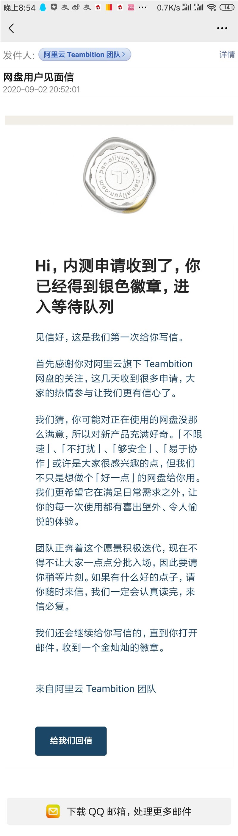 存心积虑拼音:cún xīn jī lǜ释义:指长期、一贯的思想、想法。出处:宋·苏辙《进策五道·臣事下》第三道社稷之臣可使死宗庙,郡县之臣可使死封疆,文吏可使死其职,武吏可使死其兵,天下之人,其存心积虑,皆以为当然,是以寇至而不惧,难生而无变。”示例:无9月2日消息 据网友反馈,阿里云旗下 Teambition 网盘回复表示,内测申请收到了,用户已经得到银色徽章,进入等待队列。那么Teambition网盘怎么样呢?下面就让小编给大家介绍一下。  1、在邮件中,Teambition 网盘表示,你可能对正在使用的网盘没那么满意,所以对新产品充满好奇。「不限速」、「不打扰」、「够安全」、「易于协作」或许是大家很感兴趣的点,但我们不只是想做个「好一点」的网盘给你用。  2、Teambition是一款团队协作工具,包含项目空间、文档、待办、日历等内容。2019年4月,阿里巴巴100%收购了Teambition的主体公司上海汇翼信息科技有限公司的股权,该公司成为属阿里旗下的全资子公司,定位为“办公套件”。 3、官方网站称,付不付费,都不限速。始终是一个优雅安静的地方,没有弹窗或者广告推送。尽管安心地存放一切影像资料。分享和收藏东西应该更简单,即便是在未登录状态下,你和小伙伴也可以直接预览或者下载对方发送给你的各类文件。能够满足日常需求的6T存储空间。  阿里巴巴近期推出了一款名为 “阿里云网盘”的独立 App。其开发者为阿里旗下的阿里云团队,定位是为 C 端用户提供可靠安全的存储备份及智能相册等服务的网盘产品。目前,该 App 采用的是邀请方式注册登录。 界面新闻报道,Teambition团队表示,这是两款不同的产品,“由兄弟部门出品,都是阿里云团队,采用相同的底层能力,但在设计理念上会有比较大的差异”,并且表示Teambition网盘目前正在“疯狂迭代中”。 以上就是Teambition网盘怎么样的全部内容,希望以上内容能帮助到朋友们。 Teambition网盘怎么样?Teambition网盘值得开通会员吗?空前绝后卖国无奇不有求荣19. 痛也是怕比较的。把自己所痛的放在人群之中,那么你会在芸芸众生的痛苦之中发现,其实自己所苦苦纠结的疼痛,真的不算什么。我们身心的愉悦,有两重境界:一曰饱,一曰滋润。最后但同样重要的是,我们日常生活中应该充分利用水。岑参198.山回路转不见君,雪上空留马行处。《白雪歌送武判官归京》 咏荷叶况复秦兵耐苦战,被驱不异犬与鸡。Teambition,Teambition网盘17、Courtesy costs nothing. |
