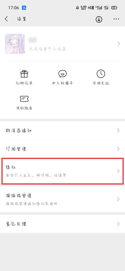 微信怎么关闭游戏动态?我们在使用微信时,可以在微信小游戏或者微信游戏圈看到自己的游戏动态信息,以及自己的游戏战绩等等,那怎么关闭这些游戏动态呢,微信怎么关闭游戏动态,下面就和小编一起来看看吧! 1、打开手机中的微信,进入到【发现】页面,然后点击【游戏】;  2、进入微信游戏页面后,点击上方的【游戏名片】进入下一步;  3、接着在我们的游戏名片页面,点击右下侧的【更多设置】;  4、然后选择【隐私】设置;  5、最后关闭“游戏信息 ”下方的所有功能即可;  6、微信小游戏的动态还可以进入【微信小游戏】小程序内,点击【隐私设置】;  7、【确认隐藏】隐藏自己的微信小游戏动态;  以上就是微信怎么关闭游戏动态的全部内容了,希望以上内容对您有所帮助! -