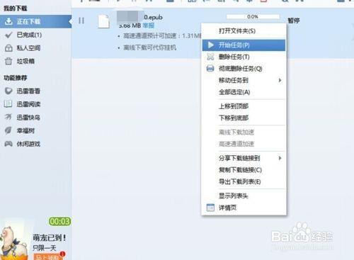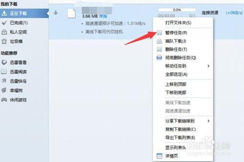 当我们下载的时候17. 一生情,蜿蜒成潺潺的溪水,向着爱海奔腾而去;一生爱,辗转成绵延的相思雨,踏落一路红尘的情趣;我的爱总是为了你,把你留在我香甜的梦境里!,提示资源不足的时候,任务就无法下载完成。  出现这个提示的时候,我们将鼠标放到该下载任务的位置上并右键。  右键下载任务后,弹出选项,我们点击“暂停任务”。  接着,暂停任务后,这时我们再把鼠标定位到这个已经暂停下载的任务上。  然后,我们再一次右键这刚刚暂停的下载任务。  但是,这一次右键后弹出的选项中,我们点击同一位置中的“开始任务”。  当这个任务重新开始下载后,我们发现就可以继续下载完成,并不再提示资源不足。  -