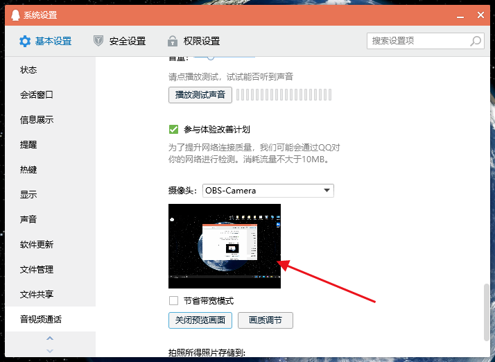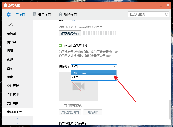 OBS Studio是网络主播比较喜欢的一款视频录制软件,它不仅支持主播推流,还可以充当虚拟摄像头。由于电脑没有安装配备摄像头,进行QQ视频通话就会稍显不便,鉴于此,大家可以将OBS和QQ进行配合使用,操作方法如下。 电脑QQ如何使用OBS Studio虚拟摄像头? 首先下载安装OBS Studio软件,然后安装对应的虚拟摄像头插件(VirtualCamera),完全根据提示操作即可,  一切准备就绪,使用管理员身份运行OBS软件,打开软件,在上方菜单栏中点击【工具】——【虚拟摄像头】选项,  打开QQ,输入账号密码,登录软件,点击主菜单,选择【设置】,进入设置界面,点击【基本设置】——【音视频通话】选项,  如图,找到【摄像头】一栏,点击下拉菜单,选择OBS Camera,  然后点击【打开预览画面】,这个时候就能使用OBS录屏的内容作为摄像头内容,是不是很方便呢?   想了解更多精彩教程资讯,记得关注wmzhe.com。 -