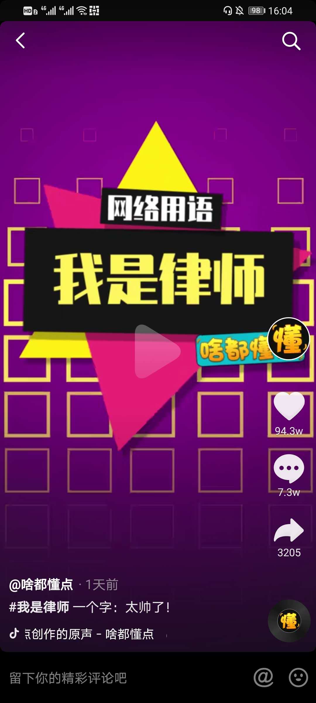 抖音中会有很多热门的视频,其中评论区都会出现“我是律师”等一系列评论,那么我是律师在抖音视频中是什么意思呢?很多的网友对于这个并不太了解,接下来小编就给介绍下这个梗。  一、我是律师梗的出处 我是律师梗出自抖音博主&寸草衔结拼音:cùn cǎo xián jié释义:比喻虽然力薄,亦当感恩图报。出处:无示例:无ldquo;醒醒吧张律”,视频中博主用简单的剧情带大家了解法律知识,其标志性的配件就是他手中的雨伞,以及结尾的一句我是律师,一种用法律保护大家的气息扑面而来。  二、我是律师梗的意思 就是字面意思,只不过被网友恶搞成了评论,也是有一点调侃抖音博主的味道,因为博主的西装革履太让人出戏了。所以我是律师就被网友恶搞成了评论,而且还是很特殊的评论。   以上就是我是律师什么梗的全部内容,希望以上内容能帮助到朋友们。 抖音上我是律师什么梗?评论中我是律师什么意思?桃三三两两李满天十万火急下59. 我想说的是,时间一定会把我们生命中的碎屑带走,漂远。而把真正重要的事物和感情,替我们留下和保存。最终你看到这个存在,是心中一座暗绿色高耸山脉。沉静,安宁,不需任何言说。你一定会知道,并且得到。现在,我想这真是一次成功的经历,并且我完全理解了劳动的意义。161.人闲桂花落,夜静春山空。《鸟鸣涧》 二十馀年如一梦,此身虽在堪惊,头登小阁看新晴。古今多少事,渔唱起三更。太乙近天都,连山接海隅。抖音Common sense tells us that a photographer can succeed by working in both media. |