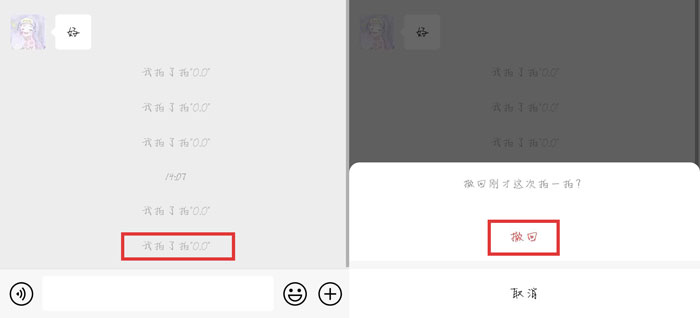 微信拍一拍怎么撤销?微信拍一拍撤回怎么操作?在前不久,微信系统进行了一次更新,微信拍一拍可撤回,这说明我们的拍一拍可以和消息一样撤回,这样就不会再怕错人了,那微信拍一拍怎么撤销,撤回怎么操作,下面就和小编一起来看看吧! 1、微信拍一拍撤回功能需要升级系统,iOS版本升级到7.0.15及以上版本,安卓版本升级到7.0.18及以上版本; (注意,如果被拍的好友版本没有升级,不支持拍一拍撤回,那么我们撤回拍一拍之后,好友不支持撤回仍可以看到拍一拍消息)  2、更新微信版本之后,点击进入好友聊天对话框,双击好友的好友出现拍一拍消息之后,再5秒之内再次双击会出现【撤回】;  3、也可以通过长按消息中的“我拍了拍XX”的提示弹出撤回消息,注意拍一拍撤回功能只在2分钟之内有效,超过2分钟无法撤回拍一拍;  4、点击【撤回】之后,之前的拍一拍提示就会撤销,并显示一个提示“如果对方使用的不是最新版本微信,可能无法撤回”。  以上就是微信拍一拍怎么撤销的全部内容了,希望以上内容对您有寸地尺天拼音:cùn dì chǐ tiān释义:指一小块土地和天空。出处:唐·杜甫《洗兵马》寸地尽天皆入贡,奇祥异端争来送。”示例:无所帮助! -