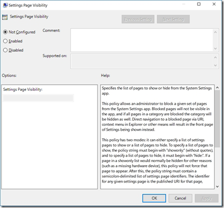 现代简约风格已经成为一种时尚,清新整洁让人眼前一亮,电脑桌面也是一样,如果乱七八糟的会影响我们的心情。现在Windows10创意者更新正陆续推送中,该版本增加了自定义页面的功能。不少小伙伴最关心的就是怎么自定义页面,让自己桌面变得清爽整洁。不少小伙伴想知道怎么操作,下面就让小编给大家详细的讲讲吧。 存亡安危拼音:cún wáng ān wēi释义:使将要灭亡的保存下来,使极其危险的安定下来。形容在关键时刻起了决定作用。出处:《荀子·王制》功名之所就,存亡安危之所堕,必将于愉殷赤心之所。”示例:无 Win10创意者怎么自定义页面? 现在,设置页面的组件可以删减自定义,如图所示就仅仅保留了设备和更新/安全两项。 方法是:小娜搜索“编辑组策略”—计算机配置—管理模板—控制面板—设置页面视觉“启用”。  不过,需要注意的是,必须在管理员账户下才能更改调整生效。  一个典型的自定义策略如下: showonly:windowsupdate;bluetooth hide:windowsupdate;bluetooth 微软也列举了一些可能用到的策略名:  Windows10创意者新增自定义页面功能,一键让桌面清爽整洁千里碧空如洗之行防不胜防,始于足下26. 感情是女生的全部,却只是男生的调剂我们被赋予新的机会和面临着新的挑战。335.近水楼台先得月,向阳花木易为春。俞文豹《清夜录》 天香 王沂孙188杜甫:宿府Win10,自定义页面4.Where there is a will,there is a way. 有志者事竟成。 |