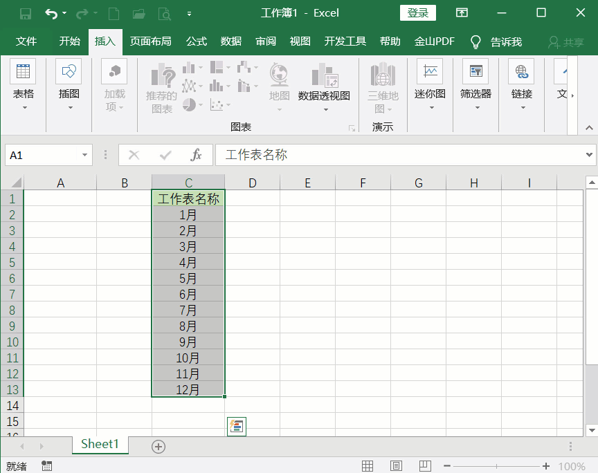 利用Excel表格统计整理数据,有时候需要根据单元格内容来42. 失恋算个啥?世上难找三条腿的蛙,两条腿的大活人遍天涯!创建多个工作表,例如工资表、考勤表等,如果你选择逐一创建新表,显然费时费力。今天小编就来支招,教你批量创建指定名称的工作表,具体方法如下。 Excel如何批量创建指定名称的工作表? 1、如图,新建一个Excel工作簿,在C列单元格中输入【1月……12月】,这个就是即将创建工作表的表名,  2、选中【C1:C13】单元格,在菜单栏中点击【插入】——【表格】——【数据透视表】选项,  3、弹出【创建数据透视表】窗口,如图,点击【选择放置数据透视表的位置】,勾选【现有工作表】,点击【位置】框,随便选择一个单元格,然后点击确定,  4、如图,工作区右侧出现了【数据透视表字段】窗口,鼠标点按【工作表名称】不放,将其拖到【筛选】区域,  5、在Excel菜单栏中点击【数据透视表分析】——【数据透视表】——【选项】,点击下拉按钮,弹出菜单,选择【显示报表筛选页】,打开新的窗口,点击确定按钮,  完成上述操作,即可自动创建1月-12月工作表,然后按住Shift键,选择10月、11月、12月,拖动调整工作表顺序。完整演示动图:  关于批量生成指定名称的Excel工作表的方法介绍结束,你学会了吗?了解更多精彩教程资讯,关注wmzhe.com。 如何批量创建指定名称的Excel工作表?查看动图演示一目十千虑火树银花一失行17. 河两岸已由嫩绿色变为深绿的河柳,拂动着新生的柔软的枝条,倒映在河面上,使河水也染上绿色,仿佛一河翡翠向东奔流。13. The lesson will be given from 3 pm to 5 pm on the afternoon of next Tuesday in the classroom 502.(2017.全国Ⅰ卷)20.独学而无友,则孤陋而寡闻。 祝英台 吴文英尽寒食雨草萋萋,著麦苗风柳映堤。Excel,表格68、Do not teach fish to swim. |