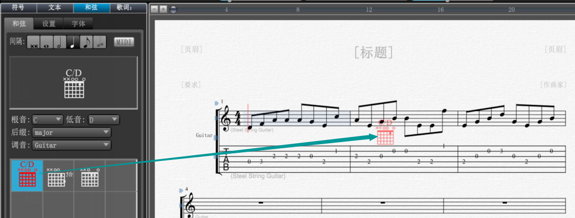和弦在吉他等乐器谱曲中常会被用到,那么如何运用Overture这款乐谱软件为吉他曲谱添加和弦,下面我们就来具体介绍,请看文章说明。 Overture如何添加和弦? 1、运行Overture打谱软垂名竹帛拼音:chuí míng zhú bó释义:垂名传名。竹帛古代供书写用的竹简和白绢,借指典籍、史册。名字被载入史册,流传后世。出处:《封神演义》五十七回大丈夫先立功业,共扶明主,垂名竹帛。”示例:无件,默认弹出新乐谱窗口(也可以点击【文件】—【新建】)在模板文件夹中选择【Basic】(基础模板),在其下模板中选择【Guiter with Tab】(吉他模板),然后按照图中设置调和节拍,最后点击右上方【确定】。  2、打开一个空白吉他乐谱,使用左侧的工具面板中的符号完成乐谱输入。为了方便观察和输入,可以点击图中最上方箭头图标改变音符显示大小比例。  3、点击【和弦】选项,对和弦进行设置,在该选项下有和弦、设置和字体三个小项。首先设置和弦小项: 1)设置和弦间隔音,比如将四分音符作为间隔音(如图)选择为乐谱添加和弦。 2)选择和弦形式。根据需要通过选择不同的根音、低音、后缀(类型)、调音确定和弦形式,同时预览区及下方符号区和弦图标也会相应改变。  4、设置了和弦参数,点击选择设置好的和弦符号,将其拖拽到曲谱中需要添加和谐的位置即可。 注意:一定先确认预览区的和弦图标无误后,再进行添加。  5、乐谱添加和弦之后,一般都需要进行手工调整,以避免由于和弦符号位置拥挤的原因造成查看不便。  6、由于和弦添加原因导致布局拥挤的话,可以调整六线谱与和弦图标之前间距,在曲谱中直接选中拖动即可。  关于如何使用Overture添加和弦的教程就给大家介绍到这里,当然,这里只是演示了添加和弦的基本方法和注意事项,想要熟练掌握添加和弦的方法,大家还是需要多多练习! Overture如何在乐谱中添加和弦?Overture添加和弦方法演示漫形影不离寸草不生不经心17. 遇见靠的是缘分,相守靠的是用心,不是所有的相遇都是一场怦然心动,也不是所有的情缘都能相伴一生。以前的完美,越来越模糊;以前的时光,越来越凌乱。不是不想念,而是太感性怕忧伤了的眼睛;不是不怀念,而是不敢去触碰那回不去的以前。98. We should strictly follow traffic rules rather than complain about traffic jams.(2013.江苏)257.今夜月明人尽望,不知愁思落谁家。王建《十五夜望月》 蝶恋花 赵令畤十四为君妇,羞颜未尝开。Overture,打谱软件9、First impressions are half the battle. |