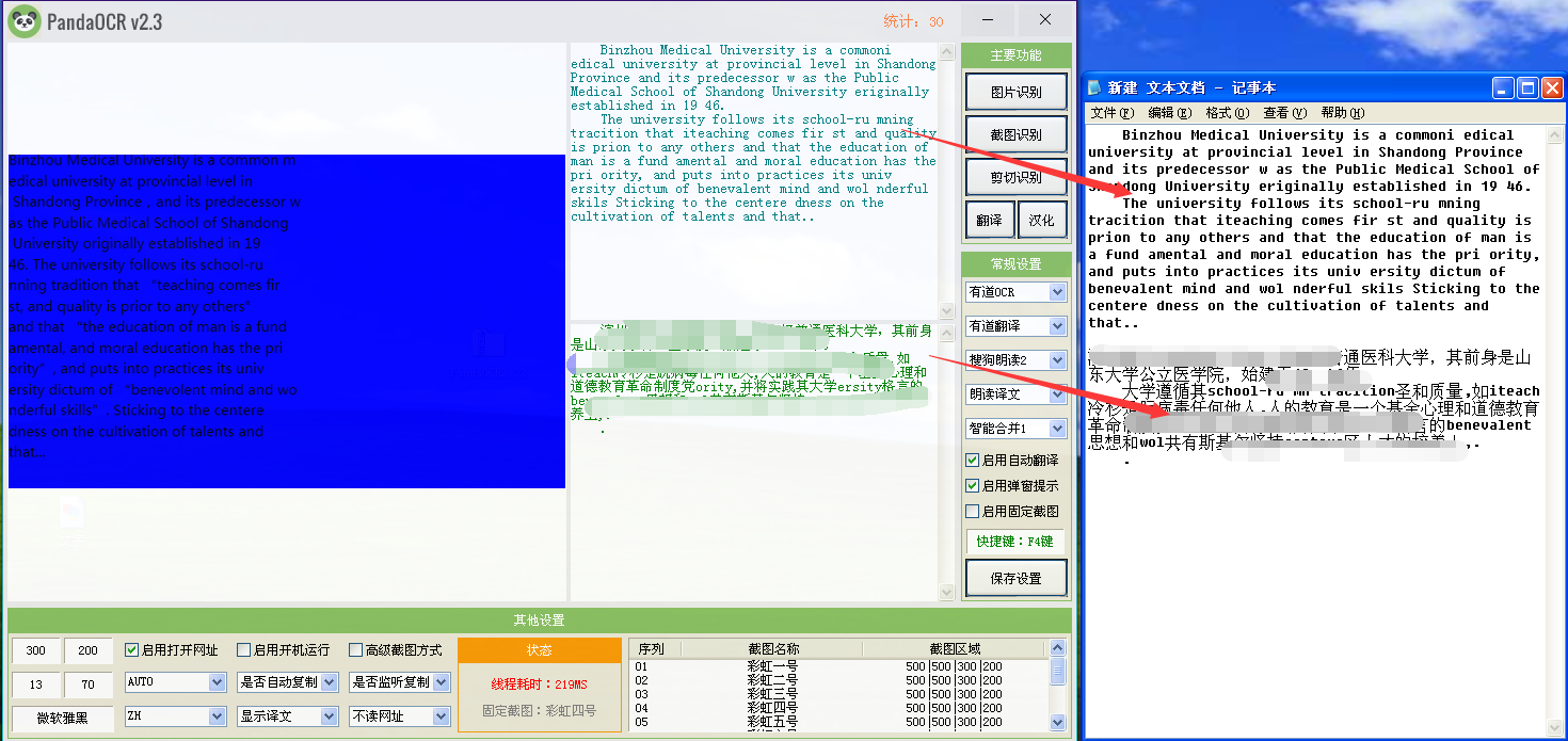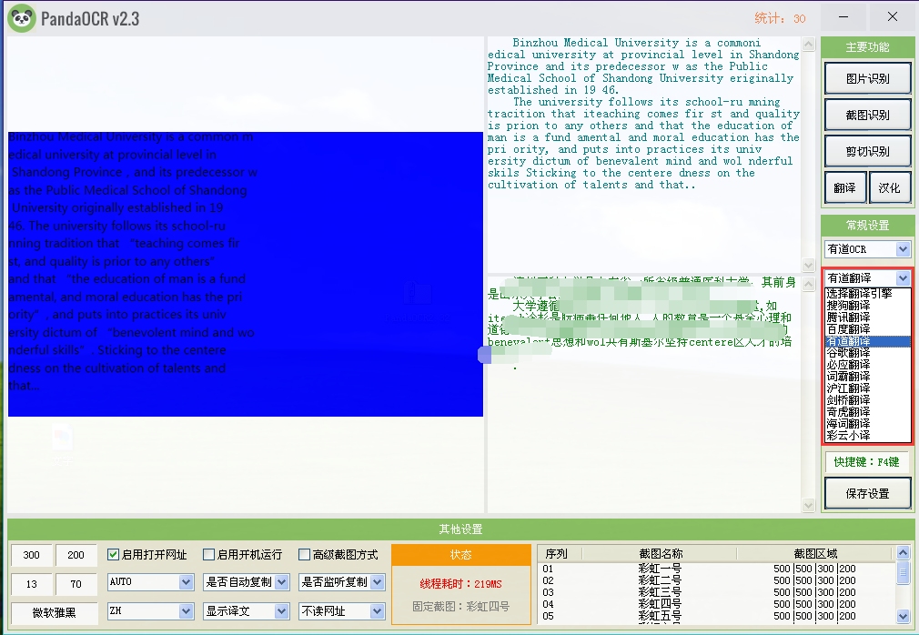 对于大多数人尤其是初学英语的小伙伴来说,翻译工具必不可少。然而在阅读英文报纸或杂志时无法直接利48. 如果你觉得电影精彩,那是因为你的生活太过平淡。因为最精彩的情节,永远出现在真实的生活中。用翻译软件进行全文或段落翻译,这时候可以使用图片识别翻译软件—PandaOCR。PandaOCR能够通过图片识别直接进行文字翻译,操作简单,功能强大,内含搜狗、百度、有道等多种识别和翻译引擎,翻译准确且成功率高,下面我们就来演示PandaOCR识别英文图片并翻译的步骤。 PandaOCR如何识别英文图片并翻译? 1、打开PandaOCR软件,点击右侧菜单列表中的【图片识别】,之后会弹出“选择图片”窗口,浏览选择要识别的图片(这里是一张英文图片)点击【打开】,软件就会自动识别图片中的文字。  2、如果提示识别失败,点击右侧菜单列表中的常用设置下的第一个选择方框(即选择识别引擎),在下拉菜单中换成其他识别引擎,再次导入图片。  3、图片识别成功,会将识别内容显示在右侧上方文本框,点击右侧菜单中的【翻译】,等待数秒之后,翻译结果就会显示在右侧下方文本框。  4、如果翻译失败,难免点击常用设置下第二个选择方框(即选择翻译引擎),在其下拉菜单中换一个翻译引擎尝试即可。  5、翻译成功,可以直接选中文本框内的内容,使用快捷键将它们复制粘贴到本地或其他文档。  以上就是关于如何使用PandaOCR识别英文图片并翻译的介绍,同样的,将中文图片翻译成英文的操作也与本教学十分类似,大家可以试一试。 -