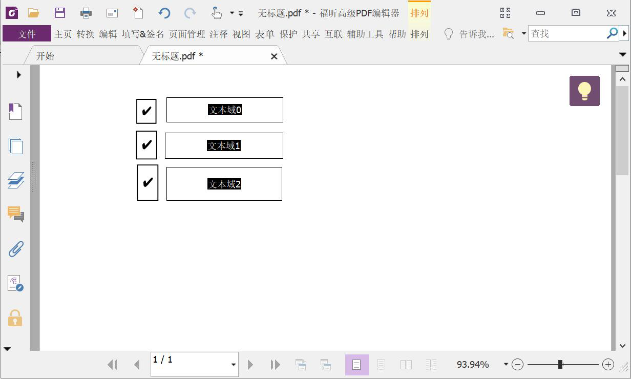 现在越来越多的用户在编辑PDF的时候都喜欢用福昕高级PDF编辑器,比如说用它来创建PDF表单。可是很多新用户在使用福昕高级PDF编辑器的时候,往往创建的PDF表单都是过于简单,还需要后续填写及编辑。不少用户都不知道该如何操作,下面就来具体介绍福昕高级PDF编辑器如何填写以及编辑PDF41. 分手后不要回头,就算那段感情再甜蜜它也只是一个曾经。表单。 福昕高级PDF编辑器如何填写编辑PDF表单? 1、首先,在福昕高级PDF编辑器中点击“打开文件”按钮,将需要填写及编辑的PDF表单导入进来。  2、然后,在福昕高级PDF编辑器的右侧会弹出发现表单域的提示,用户便可以开始填写及编辑的环节了。  3、例如,用户需要利用福昕高级PDF编辑器填写如下图的PDF表单中的复选框,先点击“表单域”中的复选框工具。  4、双击选中复选框,并在弹出来的窗口中填写复选框的文字内容。  5、填写好PDF表单内容,别忘了点击界面左上方的保存按钮进行保存。  6、接下来,为大家讲解怎么利用福昕高级PDF编辑器编辑PDF表单。先打开上一步填写后保存的PDF表单,鼠标单击复选框,便会自动生成打钩的样式,再次单击复选框即可取消打钩。例如,这里要为PDF表单编辑一些文本内容,就点击表单域中的“文本域”。  7、在适合的位置上按住鼠标左键即可画出文本域,文本域的大小可以调节。  8、当双击PDF表单中的文本域时,会出现红色底色并会弹出文本域属性的窗口,用户根据自己需要编辑文本。  9、最后,福昕高级PDF编辑器编辑PDF表单完成,也要记得点击界面左上方的保存按钮对自己的编辑操作进行保存。  无论是用福昕高级PDF编辑器填写PDF表单还是编辑PDF表单,都要事先创建有PDF表单。填写的时候,基本都是在合适的地方进行文本输入;编辑的时候,不仅可以编辑文本,还可以编辑单选框、列表框等等。 -