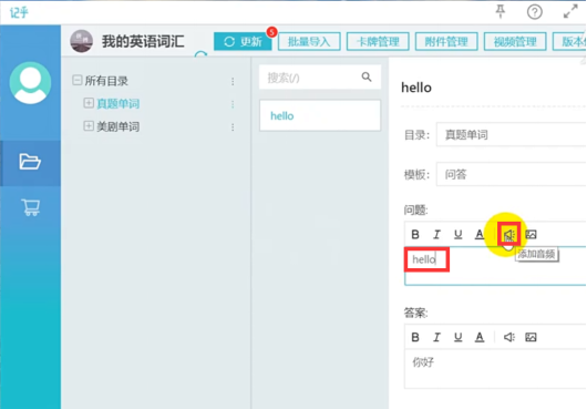 记乎作为一款优秀的记忆卡牌学习辅助软件,可以将需要记忆的资料通过电脑端的记乎卡编器上传到记乎手机APP,从而方便用户随时进行记忆学习。有很多学生喜欢使用它来记忆单词,但对于如何给单词自动加读音不太了解,下面我们就来进行演示。 记乎如何给单词自动添加读音? 1、首先我们在电脑端记乎卡编器上新建一个单词卡牌“HELLO”。该单词所在目录,上传之后位置会与手机APP端目录相同。  2、点击图中【添加音频】。  3、关于音频,这里有两个来源:云读语音和附件语音 1)添加云读语音。选择【云读语音】,然后在语言选项列表中勾选需要的语音语种,比如这里勾选【英式英语】,可以点击【试听】,听听效果,然后点击【保存设置】。  2)添加附件语音。选择【附件语音】,点击【批量导入】,添加本地语音附件即可。  4、在同一目录下新建一个卡牌,比如“money”,这时候系统就会默认之前【添加音频】的设置。  5、卡牌添加之后,单击【更新】,将卡牌信息到手机上。  6、弹出更新确认窗口,点击【立即更新】。  7、一般来说,更新时长和更新卡牌数量有关,耐心等待,直到系统给出“卡包发布提醒”窗口。  8、打开手机记乎APP寸步难移拼音:cùn bù nán yí释义:连一步都难移动。形容走路困难。也比喻处境艰难。出处:元·郑廷玉《楚昭公》第四折想当年在小舟中,寸步难移。”示例:无,点击右上角齿轮图标,打开设置界面,勾选“自动播放音频”,最后点击【完成】。   9、回到原界面,点击【开始学习】,你就可以听到单词自动播放语音了!   以上就是关于如何使用记乎给单词自动添加读音的方法介绍,希望对大家有用,谢谢! -