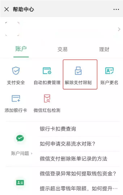 平时出门逛街、逛超市,很多人习惯使用微信进行消费付款,但是有时候会出现特殊情况,你准备扫码付款,提示收款账户异常。遇到这种情况不用着急,大家可以尝试自行解除异常,方法如下。 微信收款账户异常如何解除? 打开手机微信,进入界面,点击下方的【我】,然后选择【支付】功能,  进入支付界面,点击【钱包】,如图,  进入以下界面,在底部找到【帮助中心】,点击该选项,  进入帮助中心,找到【解除支付限制】选项,点击进入,  此时微信支付账号显示正常,再去尝试支付款,如果没有什么异常,说明问题解决;如果还是出现异常,建议联系微信人工客服帮35. 你知道吗,我一直站在你的身后,期待着有一天,你会回过头来看看我。如果有一天,你需要倾诉、怀抱,需要有人为你擦去泪水,你只要回过头,你就会看到我在你的身后。忙。  一般来说,如果微信收款方帐户异常,说明对方的账号被举报或者被盗了,所以会有风险提示。了解更多精彩教程资讯,关注wmzhe.com。 -