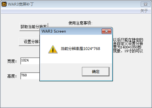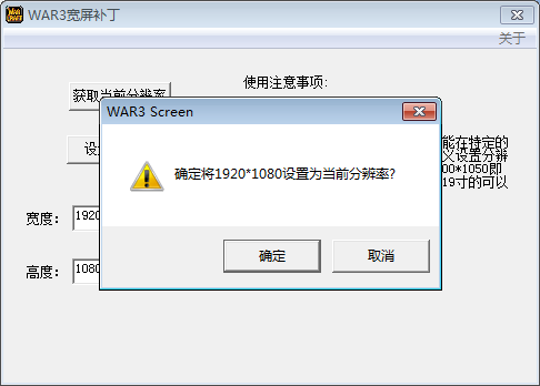 WAR3是一款经典的即时战略游戏,但很多玩家在全屏玩这款寸地尺天拼音:cùn dì chǐ tiān释义:指一小块土地和天空。出处:唐·杜甫《洗兵马》寸地尽天皆入贡,奇祥异端争来送。”示例:无游戏的时候,往往会出现黑边或画面变形的情况。这是因为WAR3发行于2002年,当时的电脑显示屏多为方屏,分辨率比率为4:3,分辨率多为1024×768;而我们现在使用的电脑大多为宽屏,分辨率比例为16:9,于是WAR3打开后就会出现自动拉伸或黑边的情况,如何来解决这个问题呢?我们可以通过使用WAR3宽屏补丁的方法加以解决。 如何使用WAR3宽屏补丁修复游戏黑边? 1、下载WAR3宽屏补丁。注意下载绿色版,防止中毒。  2、下载完成后解压,之后点击打开【WAR3 SCREEN.EXE】。  3、弹出WAR3宽屏补丁主界面,你可以点击【获取当前分辨率】,弹出新窗口(如图),显示WAR3当前的图像分辨率,可以看到当前分辨率为原游戏默认的1024×768。点击【确定】关闭窗口。  4、回到电脑桌面,在空白处右击,在右键菜单栏中点击【屏幕分辨率】(或类似选项),在弹出界面中查看当前显示屏(宽屏)的分辨率,比如如图分辨率为1920×1080(16:9的宽屏)。 注意:如果对当前电脑分辨率不满意,也可以在此调节。  5、回到WAR3宽屏补丁界面,按照刚才查看的电脑分辨率数值,修改宽度和长度后的数值。比如如图将游戏图像分辨率修改为和电脑显示屏匹配的1920×1080,修改完成,点击【设置分辨率】。  6、弹出新窗口,点击【确定】。  7、重新打开游戏,可以发现游戏图像的分辨率改变了,拉伸导致的图像变形或黑边消失了。  以上就是关于如何使用WAR3宽屏补丁的方法介绍,是不是很简单,你学会了吗? -