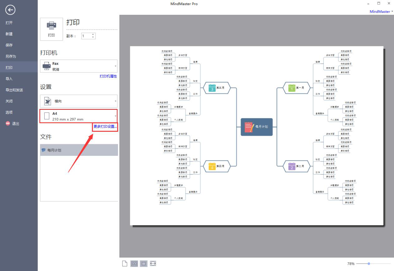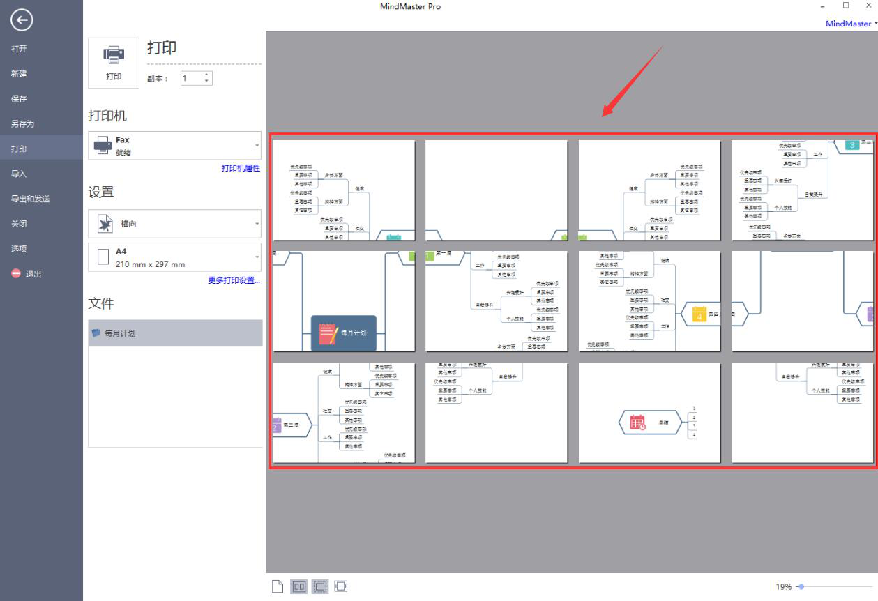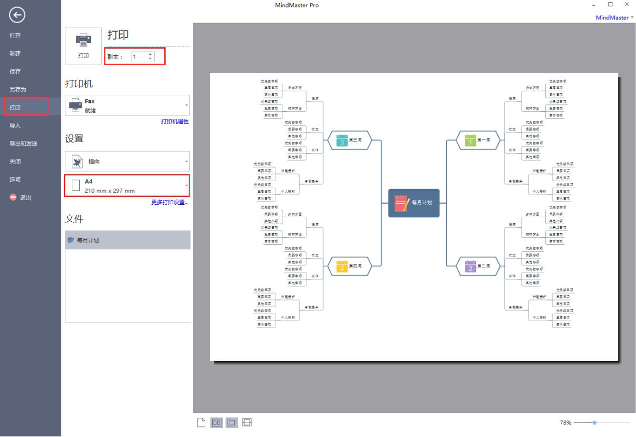 从事策划的人对MindMaster一定不会感觉到陌生,它是一款专业性的思维导图软件,可以26. 失恋后要培养乐观豁达的健康心理。振奋精神,把眼光投向未来,而不死死盯住眼前的爱情挫折上。当然,冷静地分析一下过去失恋的原因,吸取一些教训,有助于心情的开朗。用它来制作活动方案、工作计划等等。在制作方案的时候,如果涉及配合的部门多或者事项比较细的话,那整个思维导图就会比较复杂,想要清晰打印在A4纸上就会增加一定的难度。那么,如何将思维导图打印在A4纸上?很多新用户都问到这样的问题。在打印的时候需要注意一些技巧,所以,下面来为大家讲解思维导图打印在A4纸上的方法步骤,方便用户将思维导图传阅给更多的人。 如何将MindMaster思维导图打印在A4纸上? 1、首先,用户完成思维导图的制作,点击MindMaster左上方的“打印”图标,从而进入打印的设置环节。  2、然后,用户在MindMaster的打印设置界面中,除了要设置副本的份数,还要选择打印A4纸的模式。  3、打印的模式选择完成,为了让思维导图成功打印在A4纸上,用户需要点击“更多打印设置”,因为在这个设置里面,用户可以选择将一个思维导图拆分打印到A4纸上。  4、接下来,用户在“打印设置”中根据思维导图的打印预览来调试它的比例,以清晰为标准,选择合理的缩放比例后,点击“OK”按钮,思维导图便开始执行打印在A4纸上的指令。  5、此外,用户在“打印设置”中也可以通过调整打印的页数让思维导图更好适配到A4纸。页数设置好后,点击“OK”按钮,思维导图便开始执行打印在A4纸上的指令。  6、最后,用户可以在MindMaster中预览思维导图打印在A4纸上的效果。当拆分的思维导图全部打印完成,将所有的A4纸根据思维导图的样式拼接在一起就可以了。  MindMaster将思维导图打印在A4纸上的时候。如果思维导图比较多主题,内容比较大的话,就可以采用以上拆分的方法来打印。打印完成,再将这些纸张拼起来就是一幅清晰的思维导图了。 -