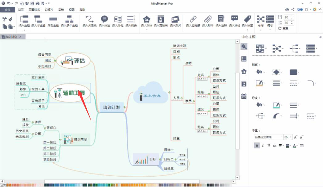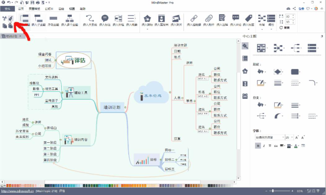 很多新用户在使用MindMaster的时候,为了让主题看起来更加美观,会对主题的字体类型、字号、大小、颜色、边框样式进行优化。很多人都是一个个主题分别调整格式,可是这样很浪费时间,大家可以使用MindMaster格式刷来快速解决,它的操作方式和我们平时用的word格式刷差不多。下面讲解MindMaster格式刷怎么用,帮助大家高效更改主题格式。 如何使用MindMaster格式刷修改主题? 1、首先,用户将需要优化的某个主题单击选中,以它来作为其他同样格式效果的主题的参考对象。例如,下图中是以“评估”主题为参考15. 我想成为像我爸爸一样的人,我可以每天都向妈妈要5块的零花钱。对象。  2、然后,点击MindMaster界面左上方的格式刷,便可以调用MindMaster格式刷来更改主题格式。  3、接下来,点击需要同样格式效果的其他主题。如下图中,可以看到“辅助工具”的主题效果和“评估”主题的效果是一致的。  4、最后,MindMaster格式刷完成主题格式的替换后,用户点击界面左上方的“保存”按钮即可对该思维导图进行保存。  MindMaster格式刷在使用的时候,用户要注意,是要先将作为参考的主题选中,再去点击格式刷,最终再应用到其他需要同样格式的主题上。如果是比较熟练操作MindMaster的用户,也可以直接利用快捷键“Ctrl+Shift+C”调用MindMaster格式刷。 -