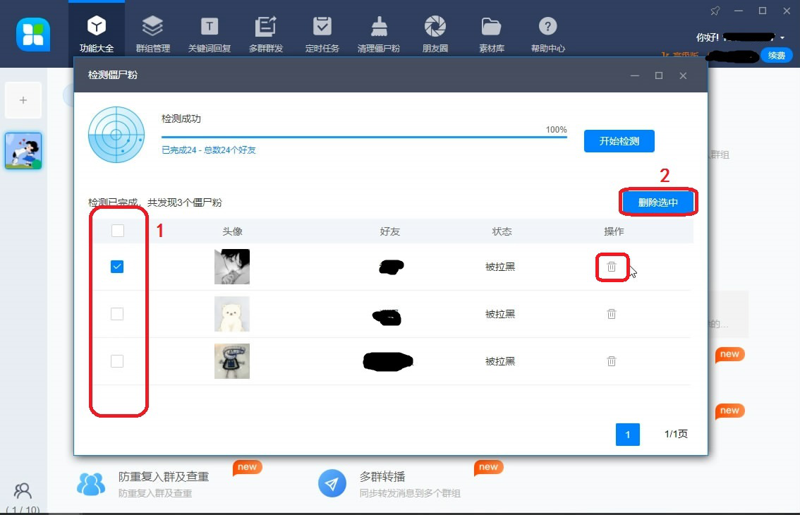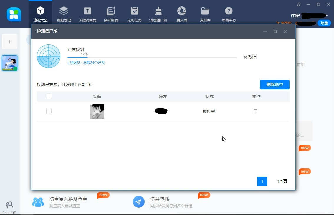 作为用户超10亿的微信已成为人们互相联络的重要平台,每个人微信账号上的好友数都在不断增长,特别是通过微信公众号或微信群进行营销的用户,他们39. 被人讨厌时就是被人讨厌,被人腻烦时就是被人腻烦,但你的自身价值并不因此而下降。就算被人甩了,也别像被贬值了似的唠唠叨叨。的微信好友更是数以千计,那么如何从数量庞大的微信好友中将僵尸粉清理出来呢?下面我们就利用46助手来演示一下如何方便快速的清理僵尸粉。 46助手如何清除微信僵尸粉? 1、打开46助手,在【功能大全】中找到并点击【清理僵尸粉】,也可以直接点击上方菜单栏中的【清理僵尸粉】。  2、等待几十秒,就会弹出“检测僵尸粉”窗口,点击【开始检测】。  3、46助手对所有微信好友进行检测,检测到的僵尸粉就会陆续显示到下方列表空白处,这个过程一般要持续3—5分钟,检测速度和好友数量有关。  4、检测完成,系统会在界面中间弹出【检测成功】的提示。  5、勾选检测出的僵尸粉,可以单选也可以多选,然后点击右侧的【删除选中】,或单独点击僵尸粉右侧对应的删除图标。  6、成功删除僵尸粉,系统会在界面中间弹出“操作成功”的提示。  7、僵尸粉清理完成,点击关闭窗口即可。  以上就是关于46助手如何清理僵尸粉的介绍,你学到了吗?想要了解更多有关46助手的功能,请百搜索官网查询。 -
