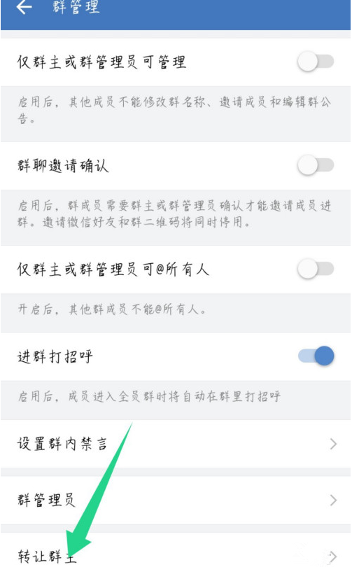 为了工作方便,大家可以通过企业微信创建群聊,后期由于特殊原因,你没时间管理微信群,可以选择转让群主身份。如何转让企业微信群主?本文整理了详细的操作方法,快来看看吧。 如何转让企业微信群聊群主? 手机端 在手机中打开企业微信,点击选择一个群聊,进入聊天窗口,点击右上角的图标,  进入聊天信息界面,如图,点击【群管理】选项,找到【转让群主】选项,点击打开,   如图,选择要转让的指定成员,弹出提示,点击确定,即可成功转让群主身份,   电脑端 在电脑中登录企业微信客户端,进入界面,如图,在左侧会话列表中选择群聊,鼠标右击群聊,弹出菜单,点击【群管理】,最后点击【转让群主】。  了解更多精彩教程资讯,关注wmzhe.com。11. 把每一天过好是最大的幸福,快乐源于每天的感觉良好。总忧虑明天的风险,总抹不去昨天的阴影,今天的生活怎能如意?总攀比那些不可攀比的,总幻想那些不能实现的,今天的心灵怎能安静?任何不切实际的东西,都是痛苦之源,生命的最大杀手是忧愁和焦虑。 -