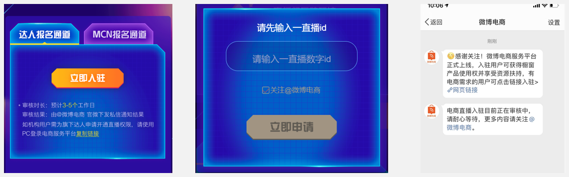 平时刷微博,我们可以看到很多网友通过直播卖货,而且买的人很多,不得不说,这是一个赚钱的途径。那么问题来了,如何利用微博进行直播卖货?有什么限制呢?具体请看文章说明。 如何开通新浪微博直播卖货功能? 第一步:开通微博小店,绑定有赞店铺 1、将新浪微博客户端升级到最新版本,打开软件,进入界面,点击【我】——【粉丝服务】——【微博小店】,根据提示操作即可,目前支持的电商平台包括淘宝、京东、有赞。  2、打开微博,进入微博小店,点击【绑定店铺】——【账户设置】,输入相关信息,点击【确认授权】,成功授权有赞店铺。  3、上架商品,进入微博小店,点击【商品管理】——【从店铺选品】,浏览商品,点击【添加】,最后点击确定,商品添加成功。  10. 温柔的雨就像你,淋湿了我的心,轻轻的闯进我的心扉,深深的留下你的痕迹。我默许你就是我的唯一,确定一定以及肯定要追到你。第二步:开通微博直播电商权限 1、下载安装一直播APP,注册个人账号(使用微博登录),获取用户ID,  2、前往指定页面进行报名,如图,选择达人通道,点击【立即入驻】,填写一直播ID,进行申请,预计3-5个工作日审核完毕,微博电商官方微博会发私信通知结果。  第三步:通过微博直播售卖商品 打开一直播APP,进入首页,点击【发起直播】按钮,进入开播设置页面,选择【直播类型】为电商,进行相关准备工作,包括上传封面、填写标题、编辑商品等,然后点击【开始直播】,即可售卖商品。   无论你是电商还是普通网友,都能通过微博进行直播卖货,有兴趣的小伙伴不妨试一试。了解更多精彩教程资讯,关注wmzhe.com。 如何开通微博直播电商权限?直播卖货更方便团结铁树开花友舍死忘生爱23. 记住别人对你的恩惠,恩惠就是别人送给你的一座天堂;记住你对别人的怨恨,怨恨就是你亲手为自己打造的地狱。4. The best way to remember new words is to practice them everyday.朱柏庐《朱子家训》374.一粥一饭,当思来处不易;半丝半缕,恒念物力维艰。 萋萋芳草忆王孙,柳外楼高空断魂,杜宇声声不忍闻。欲黄昏,雨打梨花深闭门。残阳西入崦,茅屋访孤僧。微博,直播,新浪微博,一直播It is the belief in a brighter future that gives us optimism. |