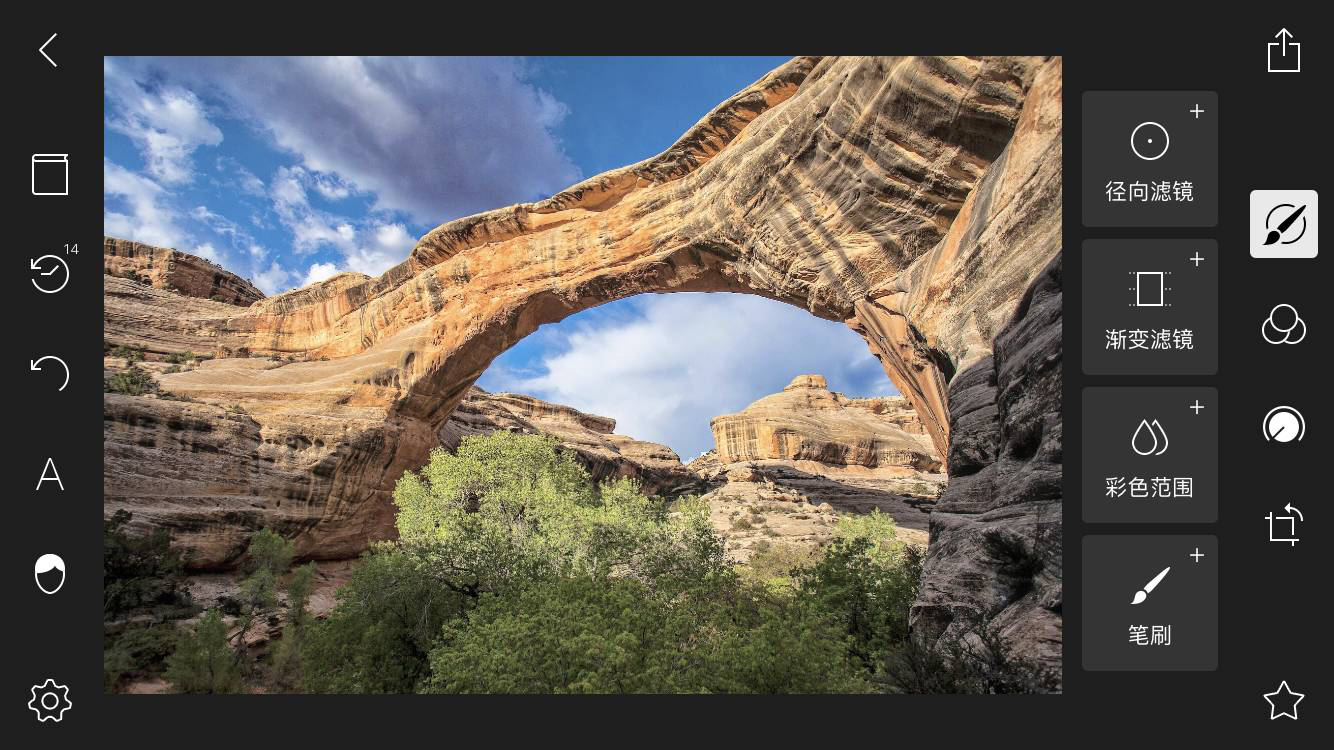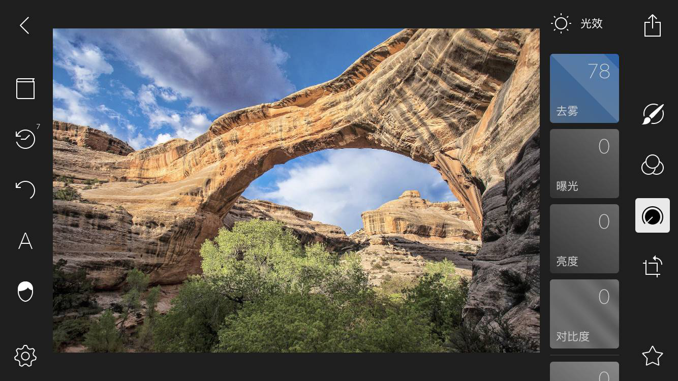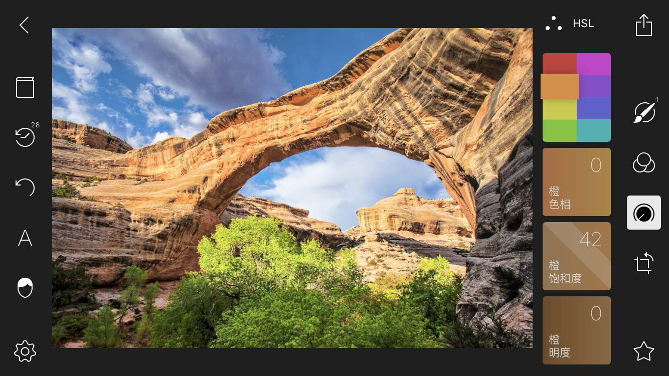 很多用户喜欢用手机拍摄景物,虽然非常方便,但是相比专业的相机,手机在拍摄大光比照片非常容易出现曝光不足的情况(如下图,和上方景物相比,地面明显曝光不足)。这就需要进行修图处理,泼辣修图是一款实用的修图软件,目前它支持手机端、PC端和网页端应用,使用泼辣修图可以快速恢复图片暗部的细节,让用户拍摄的图片拥有专业相机的画面质感。 泼辣修图如何恢复图片的暗部细节? 原图是这样的,亮度+60,亮度-60,  1、打开泼辣修图,将图片导入,选择右侧【调整】,然后点击【光效】选项,在其列表中找到【阴影】和【黑色色阶】,并将数值分别调整至+100,可以看到图片暗部变亮,细节得到了充分的显示,同时亮部无变化。 小常识:图片中最暗和较暗的区域仅受【阴影】和【黑色色阶】影响,图片最亮和较亮的区域仅受【高光】和【白色色阶】影响。  2、找到【光效】选项中的【去雾】,将去雾值调整至+78,去雾后可以发现图片画质更加通透。  3、点击界面右侧【局部调整】,然后点击【渐变滤镜】。  4、拖动图中渐变滤镜将地面覆盖住,然后点击【反转】,接着点击【曝光】将数值提高至30,这样地面的亮度得到了进一步的增强。 注意:渐变滤镜从上到下依次有三条线组成,第一条线以上部分表示完全受参数的影响;第一条线和第三条线中间部分受参数影响逐渐减弱;第三条线下方表示完全不受我们参数的影响。  5、点击最右侧【调整】,然后点击【HSL工具】,在其16. 遇见你,是我一生的幸运,喜欢你,是我做过最好的事。下色彩选项中选中【黄色】,接着将黄色对应的色相和饱和度数值分别调整至12和100,可以看到以图片中树木的表现力得到了增强。  6、接着选中橙色,然后调整橙色的饱和度,使图片中山脉的表现力增强。  以上就是关于如何恢复画面暗部细节的介绍,通过这个教程,我们清楚了使用泼辣修图对暗部细节进行恢复时需要用到的工具有光效、渐变滤镜和HSL工具。 -
