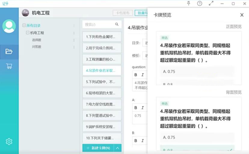 以前老师在出试卷的时候,基本是先用Word编辑试题,再拿去打印分发给学生带回家做。可是很多学生都会忘记带,导致试卷无法按时完成,也影响了老师对学生学习的评估。其实,用Word做的试题可以批量导入记乎来制卡,这样学生即使是忘记带试卷也可以通过记乎来做了。可是,很多用户都不了解它的操作方法。所以,本文来为大家具体讲解记乎批量导入Word制卡的方法。 记乎如何批量导入Word文档进行制卡? 1、首先,用户打开记乎的卡片编辑器,将自己的卡包做好,点击“批量导入”的按钮。  2、用户可以看到记乎是无法直接批量导入Word来制卡的。需要根据自己的试题类型下载相关Excel模板。  3、Excel模板下载完成,将需要批量导入的Word文档打开,“Ctrl+A”全选文档内容,将文档格式清除,如图所示。  4、再“Ctrl+H”将Word的替换窗口打开。用户将那些换行的和选项字母的格式全部进行替换。替换完成,再将整个Word全选并复制。  5、打开自己在记乎下载的Excel模板,在该Excel中的第一个单元格粘贴刚才复制的Word内容。点击“分列”,在它的窗口中,点选“分隔符号”,点击“下一步”的按钮。  6、接着,在窗口中将自己设置的符号删掉,点击“完成”的按钮。  7、清除该Excel中的格式,将答案那一栏的文字和符号通过替换窗口删掉。  8、再在该Excel中的顶部插入一行,用它作为标题列。因为如果不这样做的话,到时候记乎批量导入的Word内容就会少第一行的内容。完成编辑后,点击保存。  9、回到记乎的批量导入界面,点击“+选择Excel文件”,将刚才转换了Word的Excel表格导入,点击“下一步”按钮。  10、用户选择目录、模板,并在字段对应处,将错误的地方手动纠正,点击“开始导入”。记乎便开始执行批量导入Word制卡的指令。  11、批量导入完成,用户直接在窗口中存亡继绝拼音:cún wáng jì jué释义:存保存;继接续。恢复灭亡的国家,延续断绝了的贵族世家。出处:《论语·尧曰》兴灭国,继绝世,举逸民,天下之民归心焉。”《公羊传·僖公十七年》桓公尝有继绝存亡之功,故君子为之讳也。”示例:他是要明王道,辨人事,分明是非善恶不肖,~,补敝起废,作后世君臣龟鉴。★朱自清《经典常谈·史记汉书第九》点击“关闭”按钮。  12、最后,用户在记乎便可以看到自己批量导入的Word,制卡成功。点击界面右侧的预览,便可以得到预览效果。  记乎在批量导入Word制卡之前,用户要对Word进行评估。Word的内容类型要一致,比如选择题就纯粹选择题,不要在Word中又加上填空题之类的。 -