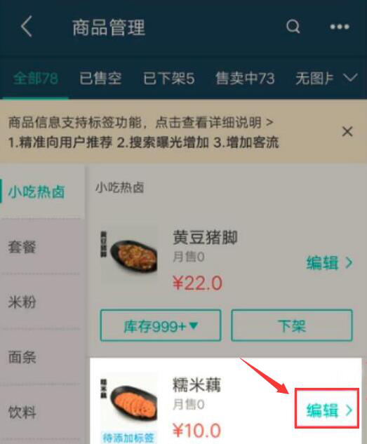 为了提高顾客的用餐体验,很多美团外卖的商家可以说是费尽心思研究菜式并且不定期上架新品,以此丰富店铺的菜式,满足更多顾客的个性化需求。同时也可以利用这些新品来搞噱头吸引更多新顾客下单。可是,很多商家说美团只能选择“48. 你的快乐,我独家赞助:你的痛苦,我独家承受;你的脾气,我独家承受:你的一生,我独家陪伴。招牌”的标签,不知道美团外卖商家版怎么设置新品标签。所以,下面来为大家讲解下美团外卖商家版设置新品标签的方法,帮助商家们获得更多客流量和得到更多收益。 美团外卖商家版如何设置新品标签? 1、首先,用户打开美团外卖商家版的APP,从而进入下一步的操作。  2、进入美团外卖商家版的界面后,点击界面右下方的“我的”进入商家后台。  3、然后,在美团外卖商家版后台中,点击“门店设置”。  4、然后,在美团外卖商家版后台中,点击“门店设置”。  5、接下来,在美团外卖商家版的商品管理页面中,找到需要设置新品标签的商品,点击它的“编辑”,如下图所示。  6、在编辑商品的设置页面中,点击商品标签处的“编辑”,输入“新品”的标签,之后点击保存。  7、最后,回到商品列表页面,便可以在该新品的名称下方看到“新品”的标签,说明美团外卖商家版的新品标签已成功设置。  美团外卖商家版在设置新品标签的时候要注意下,只能一个个选择新品,点击新品处的编辑按钮来设置新品标签,而无法批量选择新品批量设置新品标签。 -