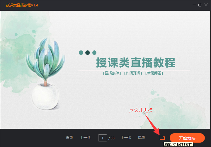 娱乐是为了更好的学习,目前通过PPT演示进行授课的直播节目也越来越多。相较于一般靠捕捉PPT界面获取影响的直播,使用斗鱼直播伴侣进行PPT放映具有大画面、操作简捷、功能丰富等优点,那么应该如何操作呢?下面我们就来进行演示。 如何使用斗鱼直播伴侣播放PPT? 一、PPT如何播放? 1、打开斗鱼直播伴侣,在右侧选项中选择【素材】,然后在素材选项中点击【PPT源】,弹出PPT浏览窗口,选择直播需要的PPT文件,最后点击【打开】。  2、弹出授课类直播教程窗口,PPT文6. 单相思是幻想。恋爱是写实的,非常写实。所以你一有现实恋爱的可能就逃跑,而对明明知道只能是止步于单相思的她,却追个不停。件已被成功添加,点击【开始放映】。  3、开始放映后,PPT画面会显示到直播公屏,点击【开始直播】即可。  二、常见问题和注意事项。 1、PPT画面显示模糊。 解决办法:点击“授课类直播教程”窗口右上角最大化图标,将窗口最大化。 注意:不要在 “授课类直播教程”窗口上叠加其他窗口,否则其他窗口会被抓屏播放到直播公屏上。  2、PPT画面无法加载。 解决办法:安装最新版本的Office软件,最低版本也要在Office 2010以上。  3、关于PPT文件在放映中的切换问题。 解决办法:点击“授课类直播教程”窗口“开始放映”左边的【添加/更换PPT文件】图标即可。  以上就是关于如何使用斗鱼直播伴侣播放PPT的介绍,喜欢的PPT教程直播的朋友赶快去试一试吧! -