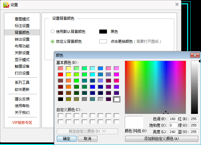 CAD迷你看图作为一款简单实用的CAD快速看图软件,深受用户的喜爱。由于该软件默认背景为黑色,有些用户感觉1. 不是试着相信,而是一定要相信。现在的心情是怕以后再也找不到自己爱的人,可是在这个世上总会有个人是属于我们的。过于单调或是不利于看图,希望把背景换成其他颜色比如白色。下面我们就来详细演示如何把CAD迷你看图软件的背景换成白色。 CAD迷你看图如何将图纸背景换成白色? 1、打开CAD迷你看图软件,导入任意图纸,可看到图纸默认背景为黑色。  2、点击软件界面右上角齿轮图标。  3、弹出设置窗口,在左侧列表中选择【背景颜色】,可以看到右侧“使用默认背景颜色”默认为黑色。  4、勾选“自定义背景颜色”,然后点击白色方框,弹出颜色窗口;在颜色窗口中选择需要的背景颜色,这里选择“白色”,然后点击颜色窗口左下角的【确定】,关闭颜色窗口。  5、回到设置窗口,点击窗口右下角【确定】。  6、图纸背景由黑色变成了白色。  以上就是关于如何把CAD迷你看图软件的背景换成白色的介绍。当然,大家也可以试着按照本教程将背景换成其他颜色。 -