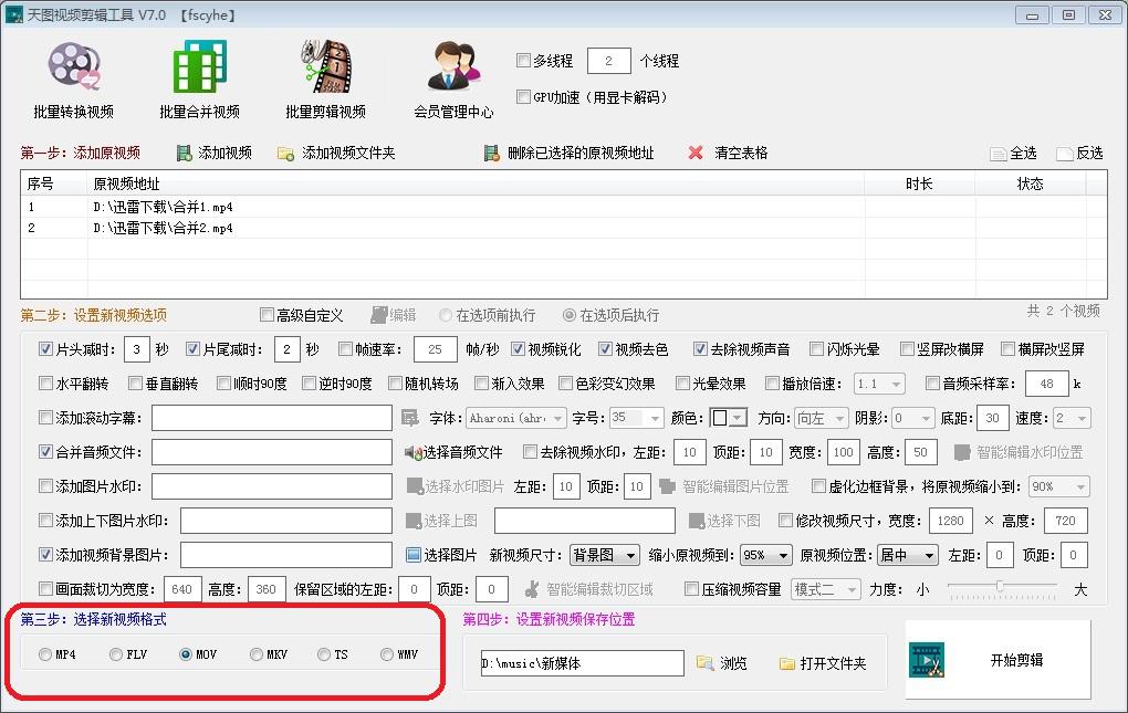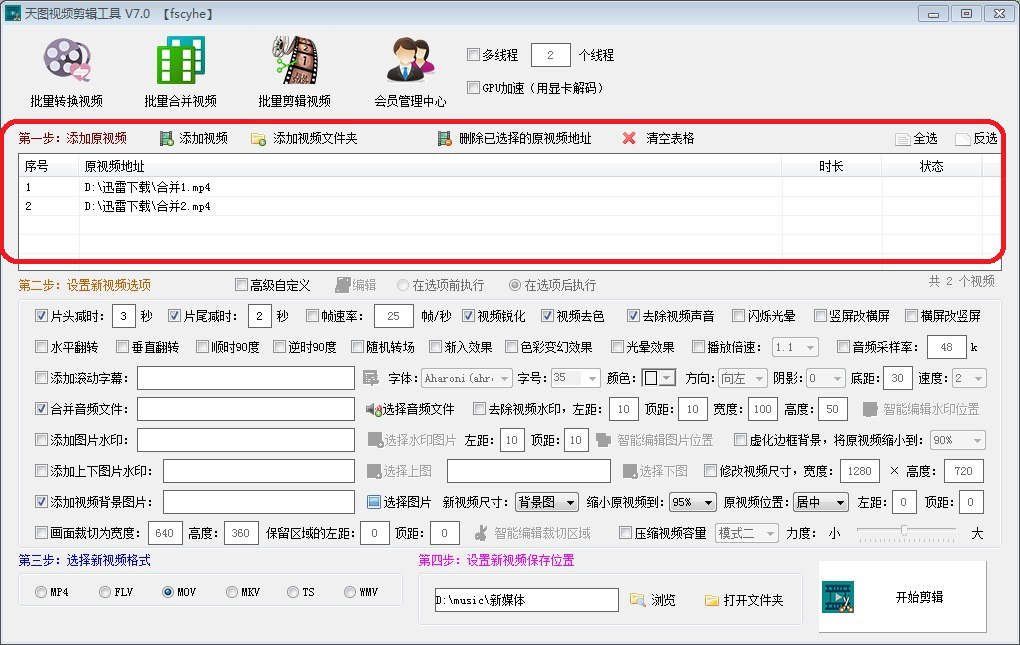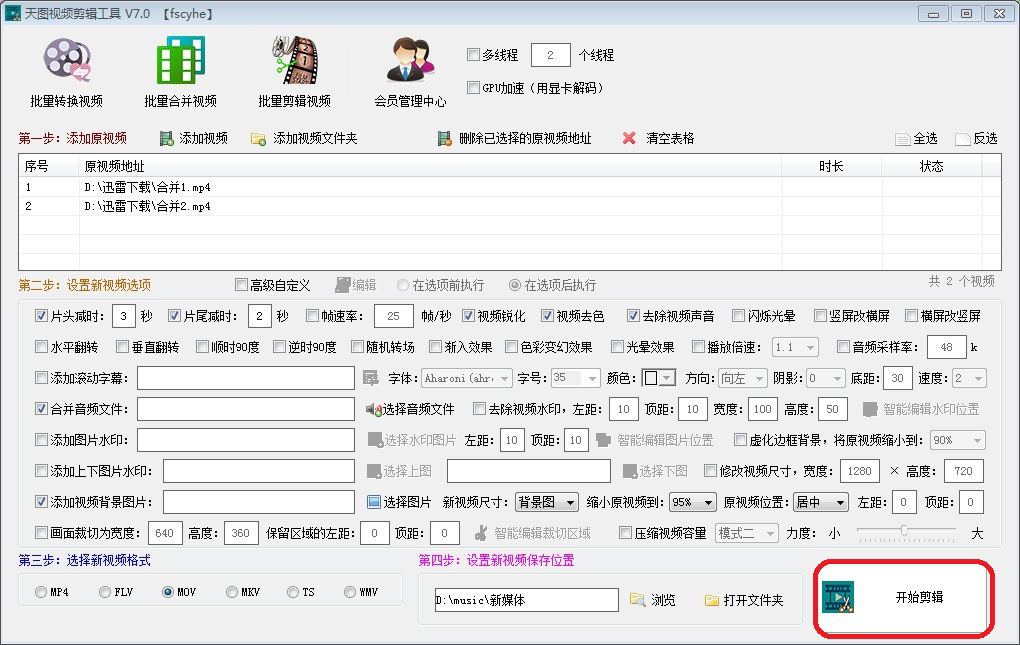 随着视频剪辑软件技术的发展,剪辑视频已逐渐成为大众尤其是青年群体的基本技能,因此掌握一种或几种视频剪辑软件显得越来越必要。今天就给大家介绍一款特别的视频剪辑软件—天图视频剪辑工具,相对于其他剪辑软件如PR、爱剪辑等,天图视频剪辑工具放弃了专业繁琐的视频剪辑步骤,而专注于将剪辑视频量化,从而批量的完成视频剪辑,大大提高剪辑视频的效率。下面来演示一下该软件如何批量剪辑视频。 天图视频剪辑工具如何批量剪辑视频? 1、打开并登录天图视频剪辑工具,在上方图标菜单中选择【批量剪辑视频】。  2、添加原视频。通过点击图中【添加视频】或【添加视频文件夹】或直接拖拽将需要剪辑的视频添加到原视频地址列表中。  3、设置新视频选项,这是实现批量剪辑视频的核心步骤。用户可根据自身需要通过勾选视频剪辑选项来设置视频剪辑的要求。比如,勾选“片头减时”来设置视频片头需要剪掉的时间片段。  4、选择新视频格式。勾选图中视频格式对应的选项,设置剪辑后视频的输出格式。  5、设置新视频保存位置。点击【浏览】可对新视频保存路径进行设置;点击【打开文件夹】可以打开新视频保存的文件夹。  6、设置完成,点击【开始剪辑】即可。  天图视频剪辑工具如何批量剪辑视频的教程就介绍到这里,希望通过本次教学,给大家带来视频剪辑的新思路。 蔽聪塞明拼音:bì cōnɡ sè mínɡ释义:蔽遮;聪听觉灵敏;明香得清楚。掩住耳朵,挡住眼睛。比喻对客观事物不闻不问。出处:鲁迅《且介亭杂文·病后杂谈》二、是对于现实要‘蔽聪塞明’,麻木冷静,不受感触,先由努力,后成自然。”示例:无 -