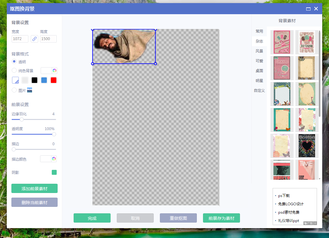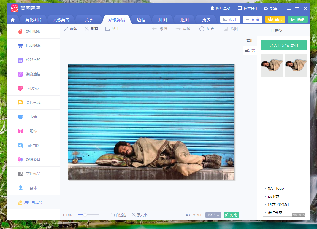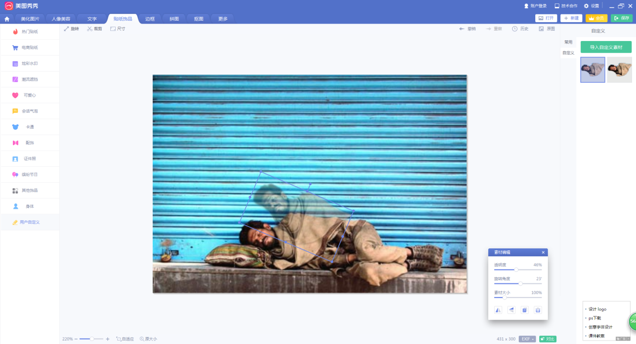 前一段时间,有网友在网上发布自己灵魂出窍的图片,当然这是在恶搞,但还有很多人不知道如何制作灵魂出窍图。下面我们就使用最常用的美图秀秀来演示制作步骤。  美图秀秀如何制作灵魂出窍的图片效果? 1、打开美图秀秀电脑版。(感觉电脑版比其他版本好用一点)  2、打开一张侧卧睡觉图。(这里随意找了一张)  3、点击上方【抠图】选项,然后选择右侧【自动抠图】。(自动抠图快,手动抠图精细,大家自由选择)  4、选择“抠图笔”,在要抠图区域画线。  5、选择“抠图笔”(若有必要的话),删除不需要的部分,最后点击【完成抠图】。  6、弹出“抠图换背景”窗口,点击【前景存为素材】。  7、再次打开原来的图片,点击上方【贴纸饰品】选项,然后点击左侧最下方的【用户自定义】,在右侧出现刚刚保存的自定义素材。  8、点击刚刚保存的素材,将素材导入到图片中。然后调整素材位置、角度、以及透明度等设置信息。  9、点击上方【美化图片】,在右侧选择合适滤镜。  9、点击上方【美化图片】,在右侧选择合适滤镜。  11、弹出保存与分享界面,在这里可以对图片要保存的位置、名称、画质进行设置,设置完成,点击【保存】即可。  以上就是关于美图秀秀怎么制作灵魂出窍图的方法介绍,希望大家能够喜欢。 -