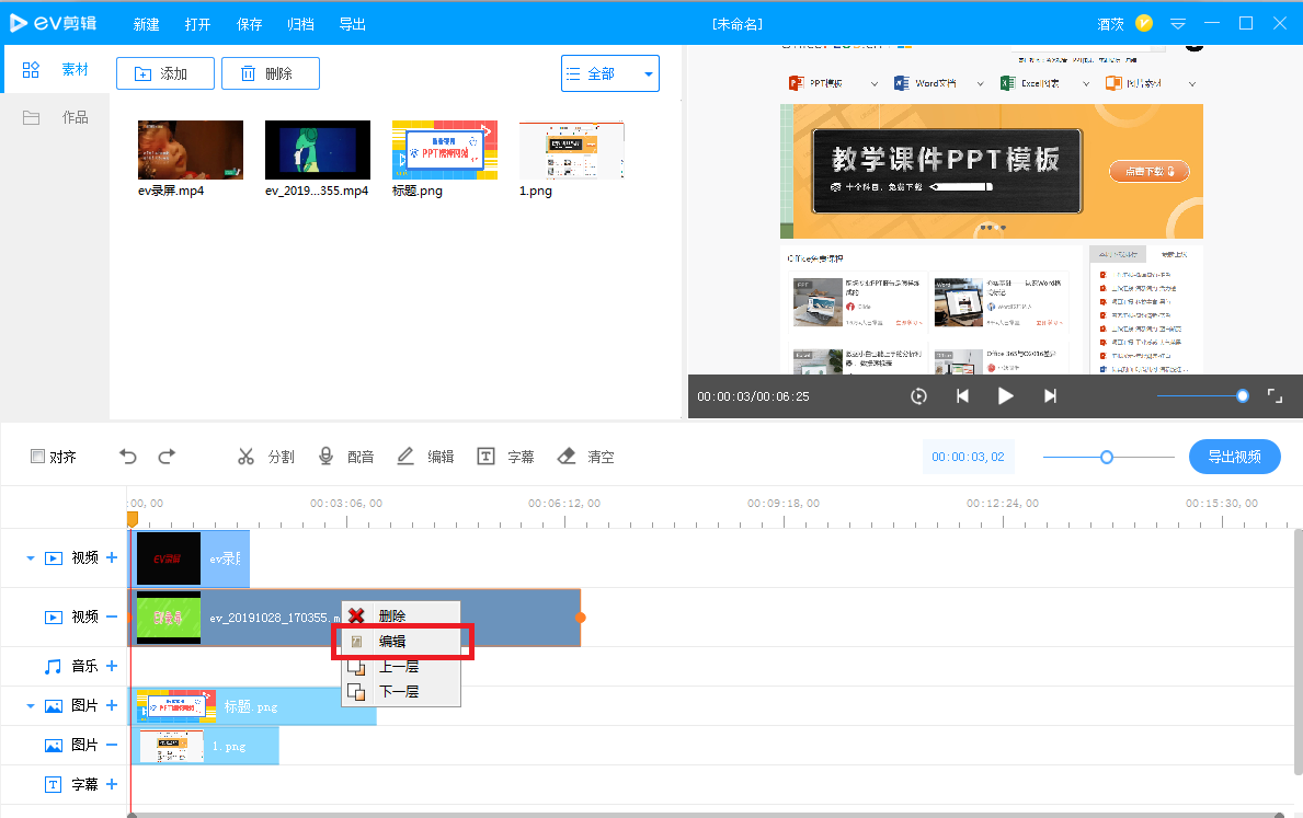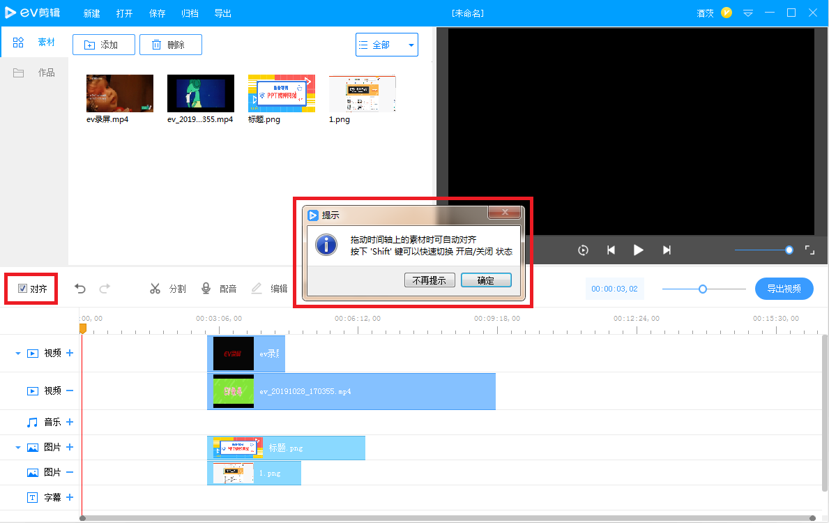 对于刚刚接触视频剪辑的新手来说,大家要做的第一件事就是选择软件,例如EV剪辑,符合“简单易用”的特点。EV剪辑是一款设计简约的视频处理软件,无需复杂操作,就能轻松实现视频剪辑,为了帮助大家高效办公,本文整理了一些关于EV剪辑的使用技巧。 视频配音 如果你想对视频进行配音,点击工具栏中的【配音】按钮,可以看到下方的配音轨道在前进,说明已经开始收录声音,停止录音,还是点击【配音】按钮。   画面编辑 如图,这里有两段视频,选择其中一个,鼠标右击,弹出菜单,选择【编辑】,软件左上角就会出现编辑窗口,今天小编主要介绍如何设置画面4. 你悄悄说你爱我,让我紧靠在你胸前,温柔的言语轻轻打动我的心田,世界只有我们两个人,我们的手紧紧相握。我们的心紧紧相连。裁剪、画面透明度、段落静音。   (1)画面裁剪 很多时候,我们只需要视频中的某一部分,点击【画面裁剪】,弹出窗口,使用鼠标拖动橙色边框,即可更改画面大小,非常方便~   (2)画面透明度 如果你想调整画面透明度,可以在窗口中点击【透明】,自行设置数值。  (3)段落静音 想给视频片段配上背景音乐,但是视频本身就有声音,不想让两种声音重叠,应该怎么设置?如图,选择视频,点击【静音】,然后添加背景音乐,就不用造成多种声音混合。  对齐功能 在多个轨道中添加素材,很难做到手动对齐,无妨,EV剪辑提供了辅助对齐功能,如图,勾选【对齐】,出现提示,拖动时间轴上的素材即可实现自动对齐,是不是很神奇?  素材归档 视频剪辑告一段落,大家务必记住一件事,就是归档。如图,点击上方【归档】,出现对话框,设置素材文件导出目录、导出名称,【resourse】是我们剪辑添加的素材,另外一个是EV剪辑的文件,如果需要继续修改,可以打开继续编辑。    EV剪辑软件有一些默认的快捷键操作,只是比较隐蔽,小编对此进行了总结: 1、保存工程---Ctrl+S 2、撤销---Ctrl+Z 3、反撤销---Ctrl+Y 4、F5---切换全屏预览模式 5、缩放鼠标放置区域---Ctrl+鼠标滚轮 6、从头开始播放---Ctrl+Enter 总结:对于完全没有经验的用户群体来说,EV剪辑就是一款非常合适的视频剪辑软件,大家千万不要忽略!了解更多精彩教程资讯,关注wmzhe.com。 -