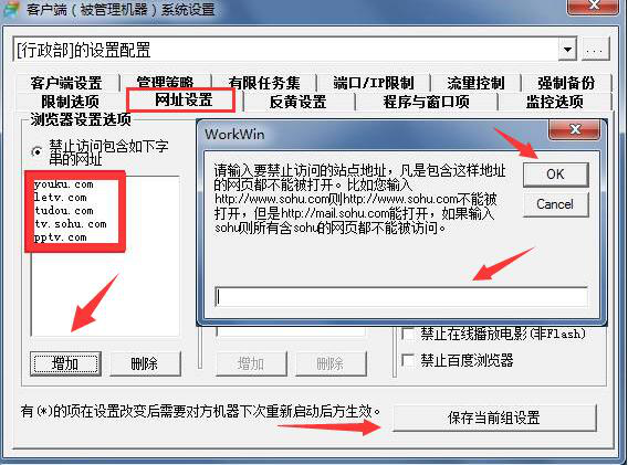 在上班的时候,有些员工会不专心工作,利用上班的时间看电影视频。这样的行为不仅影响了工作进度,还浪费了局域网的网络资源。所以,很多刚使用WorkWin的用户就问到如何设置WorkWin禁止局域网看电影视频?为了帮助管理员规范员工行为,本文将为大家讲解设置W惠然肯来拼音:huì rán kěn lái释义:惠赐,敬辞。用作欢迎客人来临的客气话。出处:《诗经·邶风·终风》终风且霾,惠然肯来。”示例:你我是患难故交,今复~,足见感情,还要说什么套话。★蔡东藩、许廑父《民国通俗演义》第六十七回orkWin禁止局域网看电影视频的几种方法。 WorkWin如何设置禁止局域网看电影? 1、想WorkWin禁止局域网看电影视频,那就在系统设置界面,切换至“限制选项”,勾选“禁止网页显示Flash动画、电影、Flash游戏”,点击“保存当前组设置”。不过本方法仅适合使用IE浏览器的被管理端。  2、切换至WorkWin的“网址设置”设置界面。用户手动输入电影视频的网址,点击“OK”按钮,该网址便会生成至禁止访问的网址列表中。用户也可以点击“增加”按钮,增加更多的电影视频网站。这个也是设置WorkWin禁止局域网看电影视频的常用方法。  3、企业管理员想用WorkWin禁止员工利用局域网看电影视频,还可以切换到“程序与窗口项”的设置界面。将常用的播放软件添加至列表中,让用户不能利用局域网资源在线看电影视频。  4、员工利用局域网看电影视频会耗费很多流量,拉低电脑的整体网速。所以,WorkWin禁止局域网看电影视频还可以切换到WorkWin的流量控制界面,设置流量上下线,当流量超时,就可以强制客户机关机或发送警告消息。  WorkWin禁止局域网看电影视频可以通过以上的几种方法来设置,用户根据自己的实际需要来选择适合自己的方法即可。不过要记得在设置过程中,设置完成后要点击保存当前组设置,这样设置的内容才能真正生效。 WorkWin如何设置禁止看电影?让员工安心工作牛毛细旭日东阴雨连绵升雨38. 湖水在枯草丛里微微低语,远处不时传来一两只小鸭的扑翅声,使月夜的湖面更显得孤寂和冷清。22.利远远大于弊 the advantages far outweigh the disadvantages25.人非圣贤,孰能无过?过而能改,善莫大焉。 芳草碧色,萋萋便南陌。暖絮乱红,也似知人,春愁无力。忆得——盈盈拾发言翠侣,共携赏、凤城寒食。282白居易:后宫词WorkWin,局域网55、All time is no time when it is past. |