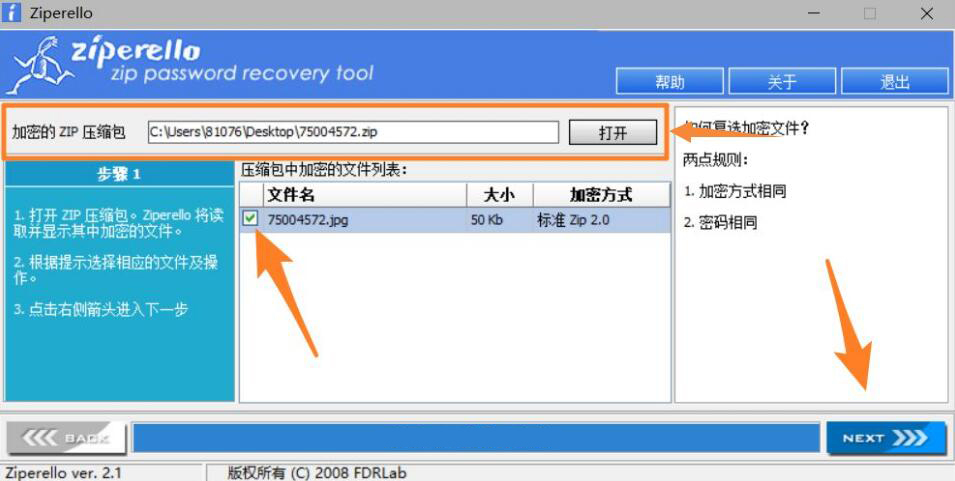 平时大家在网上下载素材的时候,会发现有些素材是一个zip压缩文件,将它下载完成,还要密码才能将它打开。对此,很多用户就问到zip密码怎么解除?因为遇到这样的情况的确让人很苦恼。想要解除zip密码,我们先要破解密码再将密码清除,这样就可以任意打开zip文件。而为了实现这一目的,往往都会使用Ziperello工具,下面来为大家讲解具体操作。 如何顺利破解zip压缩文件密码? 1、首先,用户要解除zip密码,就需要用Ziperello工具来破解密码。用户可以在本站下载Ziperello,下载后运行如下图的exe程序文件。  2、然后,用户将需要解除密码的zip导入Ziperello工具。导入后,可能文件的显示是一堆乱码,是正常的。勾选文件名的复选框,点击工具右下方的“NEXT”按钮。  3、此时,用户在Ziperello的界面中可以发现三种zip密码破解的模式,我们一般点选“暴力破解”,因为它适合任何密码组合,还要点击界面右下方的“NEXT”按钮。  4、接下来,在Ziperello的的暴力破解界面中,将字符集的所有项目和设置密码长度,再点击右下方的“NEXT”按钮。  5、接着,点击界面中的“开始”按钮,该工具便开始执行zip密码破解的指令。  6、耐心等待一会,zip密码便被破解了,用户点击“确定”按钮。  7、zip密码破解后,用户还可以打开该zip文件,输入该密码,点击“确定”,验证该密码是否正确。  8、zip密码破解并确定正确,用户在该zip文件界面右上方,点击“工具”菜单中的“管理密码”。  9、最后,在zip的管理密码窗口,单击该密码后,点击右侧的“删除”按钮即可解除zip密码。  zip压缩包密码破解的过程中,用户尽量将所有字符集勾选,因为我们都不知道别5. 爱,是世界上最美好的东西,即使它伤了你的心,也要笑着忘却,然后开始下一段旅程。人会设置怎样的密码。同时,也尽量将最大密码长度设置长些,因为有些人会设置十几位数的密码。值得注意的是,想要解除zip密码,必须要先破解密码再删除密码。 -