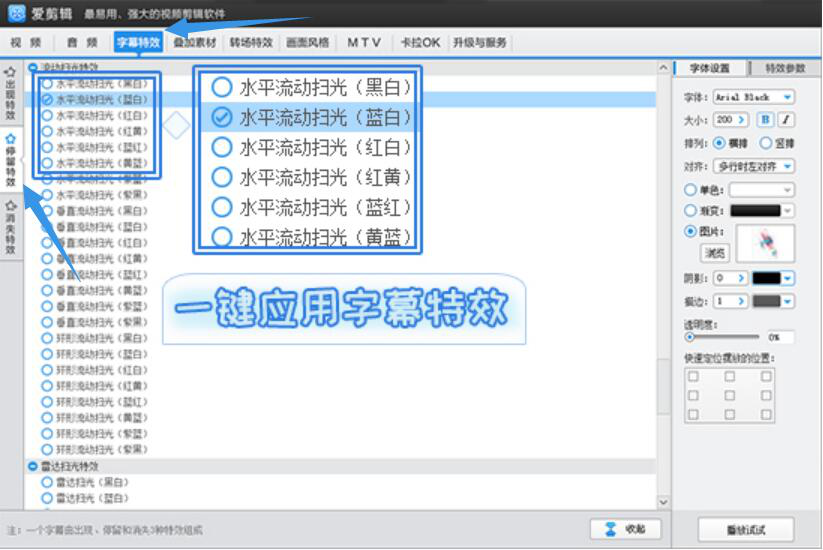 平时,我们在网上看电影、看视频的时候,常常会发现有很多不同特效的镂空文字效果。而这些镂空文字效果总是给人一种很有设计创意的感觉,有的浪漫,有的酷炫,各种风格应有尽有,自己也很想动手做出这些效果,可是不了解怎么制作。我们一般会用爱剪辑来实现,那么爱剪辑怎么制作镂空文字效果?相信很多人都有同样的疑问,所以,本文将分享其制作方法,帮助大家做出更惊艳的视频。 爱剪辑如何制作镂空文字效果? 1、首先,用户打开爱剪辑,点击菜单中的“字幕特效”,双击视频预览框,在弹出来的窗口输入需要制作镂空文字效果的文本内容,点击“确定”按钮。  2、然后,在视频预览框中,单击选中已经添加的字体。并右键单击该字体,复制粘贴同样的字体。  3、为了制作镂空文字效果。用户需要点击爱剪辑菜单栏中的“字幕特效”,在右侧字体设置处,设置字体类型、大小、排列及对齐方式、颜色、透明度、设置图片的底图为透明,还可根据需要设置字幕的阴影和描边效果。  4、字体设置完成,在其左侧,切换至“停留特效”。例如是为了打造酷炫的LED灯感,就选择“水平流动扫光”的字幕特效。  5、最后,用户可以发现文字的镂空效果、光感、立体感都能统统体现出来了。  在用爱剪辑制作镂空文字效果的过程中,两个相同的文字叠放在一起,微调位置,再设置不同的大小和颜色,这样就可以制作出镂空的3D效果。如果是电影视频类,想要做出震撼效果,可以使用扫光类的特效。 - 16. 失恋不失志。失恋后决不萎靡不振,失去对事业追求的志向和信心。