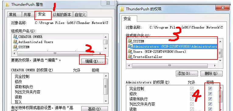 虽然迅雷极速版已经停止更新维护,但是仍然有很多人继续使用该软件,经常有用户吐槽迅雷极速版会被强制升级,非常烦人。如何禁止迅雷极速版强制更新?如何屏蔽迅雷更新提示?请看文章说明。 如何阻止迅雷极速版强制更新升级? 情况一 如果迅雷极速版已经被升级了,请先卸载软件,重新安装迅雷极速版,安装完成,不要打开软件。  在桌面中找到迅雷图标,鼠标右击,选择【属性】,如图,点击【打开文件位置】,进入导航窗口,返回上一层目录,找到Data文件夹,    打开Data文件夹,将ThunderPush文件夹拖入这一目录,如此一来,迅雷就不会强制更新。  情况二 除了自动升级迅雷极速版,还会出现软件版本升级提示,应该如何屏蔽呢?  打开迅雷极速版安装目录,将ThunderPush13. 记住。不是伤心就一定要哭泣。所以,不要那么吝啬你的微笑。许多的人,爱一生,恨一生,痴念一生,却也只能惆怅一生,遗憾一生。路总是坎坷的,平坦的路会失去人生的意义。同样的,爱也是如此,因为痛才要更加珍惜,不要放他离去。有时候,我们需要的,只是一颗静下来的心。文件夹中的数据全部删除,然后回到上一级目录,  鼠标右击ThunderPush文件夹,选择【属性】,打开面板,切换【安全】选项,点击【编辑】,如图,将该文件夹所有用户权限设置【拒绝】,点击保存。出现提示,全部点击确定,即可完成配置。  注意,迅雷极速版安装完成,尽量断开网络进行上述操作,防止迅雷后台将程序自动升级。了解更多精彩教程资讯,关注wmzhe.com。 -