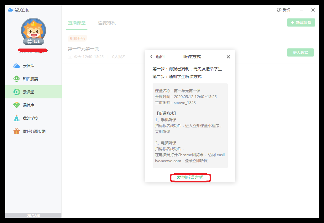 随着时代的发展,网络授课这种模式越来越凸显出勃勃生机。尤其在过去的几个月里,36. 有时多点糊涂会少点烦事,有时多点知足会少点烦恼,有时少点计较会多点平安,有时多点吃亏会多点平安。因不便出行,很多教师使用希沃白板直播的方式来进行网上授课,取得很好的实战效果。因此对于尚不熟悉这款软件的用户,我们很有必要介绍一下使用希沃白板怎么网络授课。 如何使用希沃白板进行网络授课? 1、打开并登录希沃白板,选择左侧【云课件】,点击右侧下方【批量导入课件】。将直播需要的用到的课件导入到希沃白板云课件。  2、在左侧列表中选择【云课堂】,然后点击右上方【+新建课堂】。  3、弹出“语音课堂” 窗口,按照文本框提示,设置课堂名称、开课时间、授课课件和简介等信息,然后点击【完成创建】。  4、完成创建后,会弹出二维码海报,点击【复制海报】。  5、点击【复制听课方式】,将这些分享到微信或QQ群,通知学生进入。  6、关闭弹窗,你可以看到刚刚新建的课程出现在云课堂课程列表中,然后点击【进入教室】。  7、进入直播教室,会弹出“设备检测”窗口(若没有,就点击右上方齿轮图标打开这个窗口),在此窗口中对连接的麦克风进行调试。调试完成后点击【进入教室】。  8、希沃白板在这里提供了教学工具、课件页码、互动发言等功能,教师可以根据课堂需要灵活使用。  9、点击左下角【打开文件】,可以导入本地图片、文档等文件,方便教师教学。  10、课程完成后,点击右上方【下课】,然后在弹窗中点击【结束课程】。  11、直播课程自动生成回放。  12、自动生成课程报告,教师可通过扫码下载,总结教学课程情况,点击【退出教室】。  13、在云课堂列表中显示该直播结束,并显示回放列表。教师可以点击【查看回放】,重新观看直播。  以上就是关于如何使用希沃白板进行网络授课的介绍,希望能给广大用户带来些许帮助!了解更多精彩教程资讯,关注wmzhe.com。 如何使用希沃白板进行直播授课?体验新颖教学方式滚高山窗明几静流水滚东流30. 缘分就像是一部爱情电影的导演,本能够安排两人在某个浪漫情境中幸福相遇,却偏偏设计留下巧合又高傲的转身,擦肩错过的画面;本能够安排两人来一场无忧无虑甜蜜的热恋,却偏偏设计“当现实不给爱情让路”时心塞无奈的桥段;本能够安排两人开始“从此王子与公主过上幸福生活”童话般的旅程,却偏偏设计小家庭里因柴米油盐而起的矛盾吵吵闹闹的情景。64. So far we have conducted a variety of activities on English learning.(2010.湖南)274.碧云天,黄叶地,秋色连波,波上寒烟翠.山映斜阳天接水,芳草无情,更在斜阳外! 黯乡魂,追旅思,夜夜除非,好梦留人睡。明月楼高休独倚。酒入愁肠,化作相思泪。《苏幕遮?碧云天》 清乐平 晏殊中有一人字太真,雪肤花貌参差是。希沃白板,授课,直播The advantages of B outweigh any benefit we gained from (carry more weight than those of / are much greater than) A. |