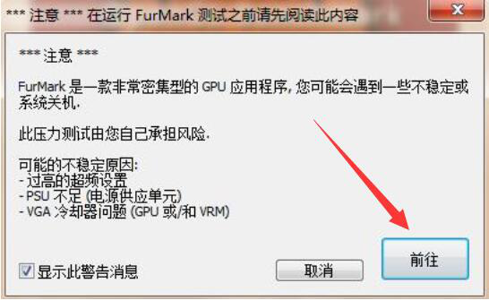 很多电脑用户在检测电脑硬件稳定性和兼容性的时候,往往都会选用furmark来进行烤机。但是,不少15. 你以为不可失去的人,原来并非不可失去。你流干了眼泪,自有另一个人逗你欢笑。你伤心欲绝,然后发现不爱你的人,根本不值得你为之伤心。刚接触furmark的用户说感觉它的操作有点难,就算打开了这个软件也不懂该怎么烤机。所以,本文将为大家讲解怎么用furmark来进行电脑拷机。 furmark如何进行电脑拷机测试? 1、首先,用户可以在本站自行下载furmark,安装后运行。在其主界面中,将“抗锯齿”的功能关闭。  2、然后,在furmark界面中,点击左下方的“设置”按钮,进入furmark设置窗口,将“压力测试”和“Xtreme压力”这两项勾选,再点击“确定”按钮。  3、接下来,回到furmark的主界面,点击“CPU压力测试”的按钮。  4、此时,furmark便会弹出如下图的提示窗口,用户点击“前往”按钮,furmark便开始执行拷机的指令。  5、接着,furmark便会在其界面左上方将分辨率、CPU信息都展示出来。当然了,如果用户不想看到这些信息,就可以按一下键盘上的“I”键即可隐藏。  6、最后,如果用户还想对画面进行渲染,那就直接按键盘的空格键。  furmark拷机的时候,如果一个小时电脑都没有发生死机的情况,那么说明电脑的硬件性能还是比较良好的。一般来说,furmark拷机的过程就十几分钟。值得注意的是,furmark拷机会对电脑造成一定程度的物理损伤。 -
