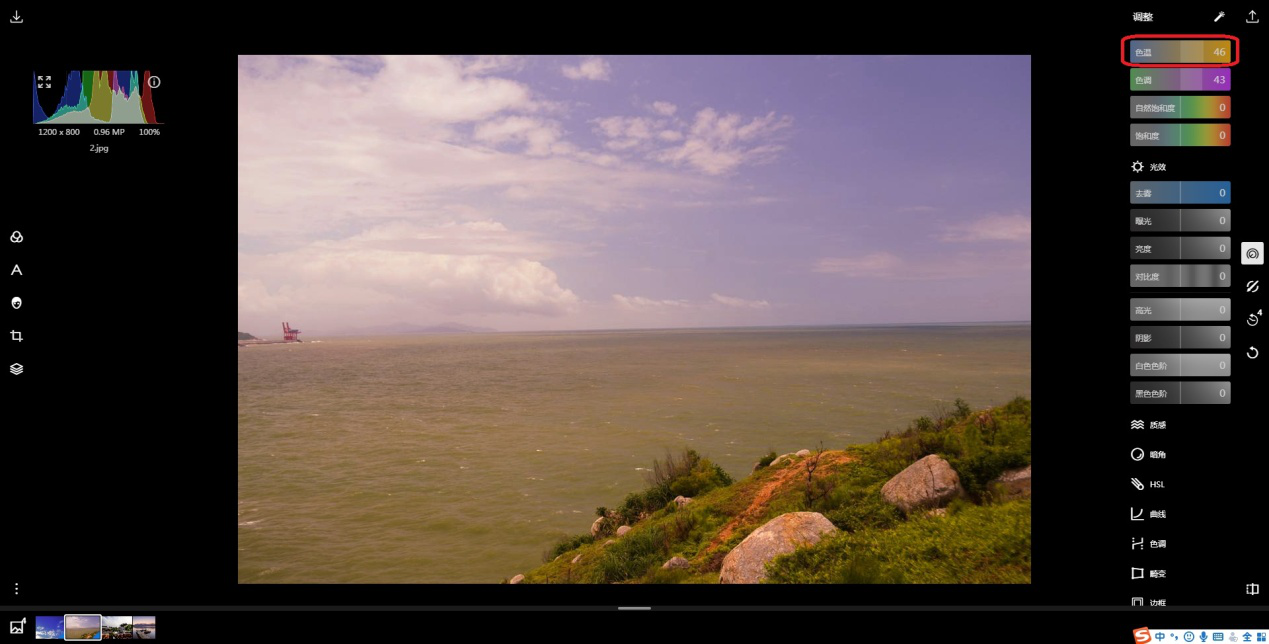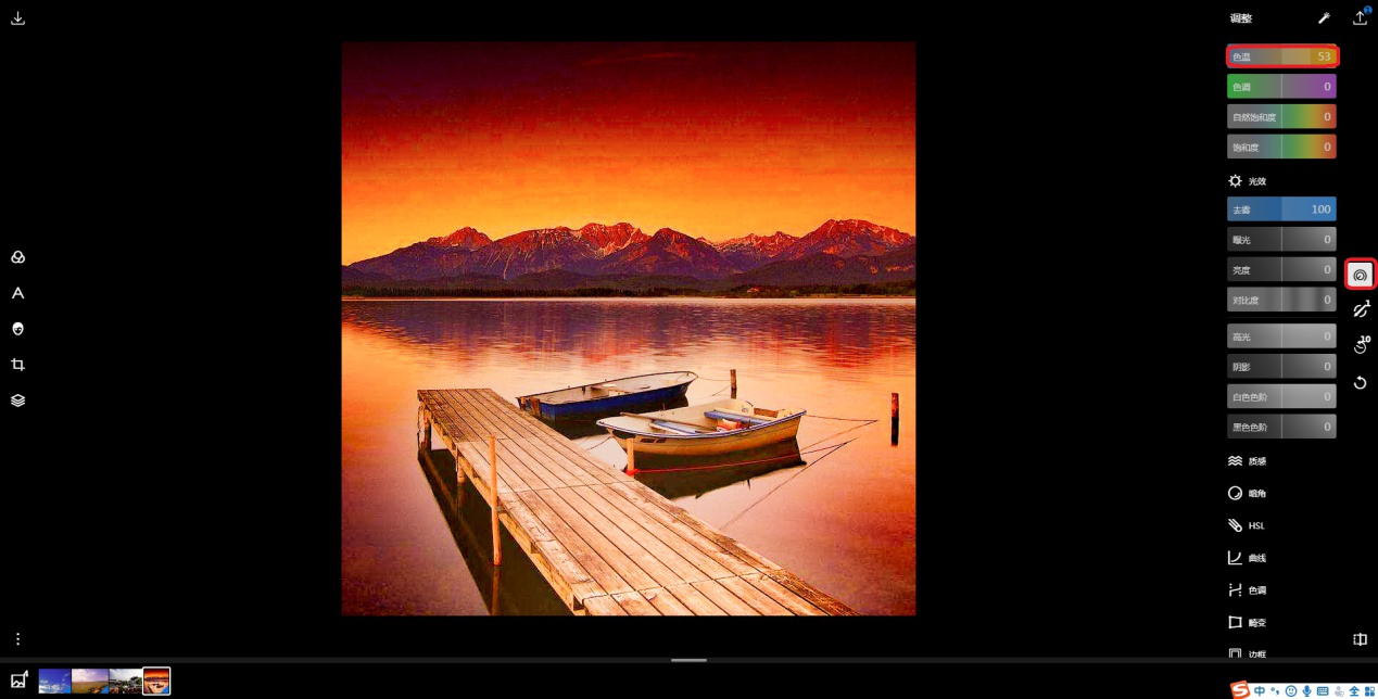 热爱旅行的小伙伴都免不了拍些照片回来,然而限于专业知识和设备的限制,拍摄的旅游照片往往需要修一下。PS专业但是操作较复杂,美图类简单但是杯酒言欢拼音:bēi jiǔ yán huān释义:相聚饮酒,欢快地交谈。出处:鲁迅《伪自由书·观斗》然而军阀们也不是自己亲身在斗争,是使兵士们相斗争,所以频年恶战,而头儿个个终于是好好的,忽而误会消释了,忽而杯酒言欢了,忽而共同御侮了,忽而立誓报国了,忽而……。”示例:无修图效果一般,而泼辣修图综合了两者的优势,操作简单,处理效果又可媲美PS。今天我们演示一下如何用泼辣修图调整旅游照片教程。 如何使用泼辣修图美化旅游照片? 修图教程一:实现冷暖风格调节。 1、首先在泼辣修图打开一张照片。  2、然后点击右侧【调整】图标,在【光效】中找到【对比度】。提高【对比度】数值使画面更通透;反之,使画面更朦胧,用户可根据需要自行调整。这里选择了提高对比度的数值。  3、最后在【色彩】中找到【色温】。提高色温数值可以让画面偏向于暖色;降低色温可以让画面偏向于冷色,用户可以根据需要自行调节。这里选择提高色温数值使画面更温暖。  修图教程二:对偏绿或偏洋红的画面进行渲染。 1、首先在泼辣修图打开一张照片,可以看出这张图片色彩上偏向绿色。  2、点击右侧【调整】图标,在【色彩】中找到【色调】。色调数值越小画面色彩越偏向绿色,反之,越偏向洋红。通过调节色调,可以有效中和画面色彩偏向,使画面更真实。这里提高色调值以中和画面偏绿属性。  3、同样,在【色彩】中找到【色温】。提高色温数值可以让画面偏向于暖色;降低色温可以让画面偏向于冷色,用户可以根据需要自行调节。这里选择提高色温数值使画面更温暖。  4、在【光效】中找到【对比度】。提高【对比度】数值使画面更通透;反之,使画面更朦胧,用户可根据需要自行调整。这里选择了提高对比度的数值。  修图教程三:应对较为复杂的画面场景。 1、首先在泼辣修图打开一张照片,可以看出这张图片既有水面又有天空。  2、点击右侧【调整】图标,在【光效】中找到【去雾】。去雾值越大,画面越清晰;反之越朦胧。这里将去雾值提高到最大,这样可以使天空的形态更加突出。  3、点击右侧【局部调整】图标,然后点击【渐变】。  4、勾选反转,这样就可以对水面调节。曝光数值越大,水面越明亮;反之,越黑暗。这里调高【曝光】数值,使水面变明亮,从而能够显示更多细节。  5、然后在【渐变】中找到的【色温】选项,提高色温数值,使水面显得温暖一些。  6、点击右侧【调整】,在【色彩】中找到【色温】。提高画面整体的色温数值。  通过以上三个教程演示,相信大家对泼辣修图软件有了基本了解,现在就可以去试试了!了解更多精彩教程资讯,关注wmzhe.com。 -