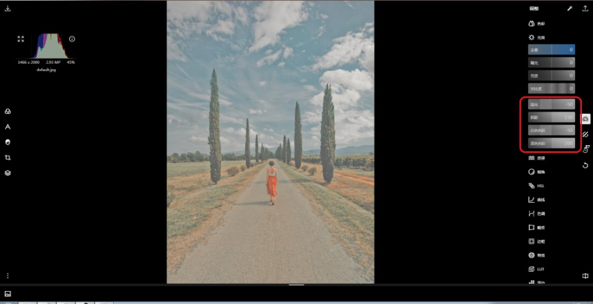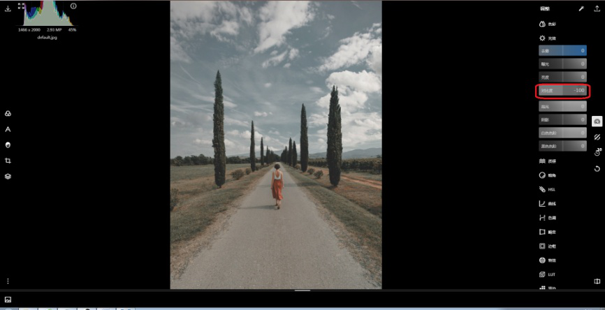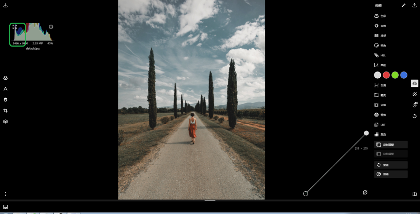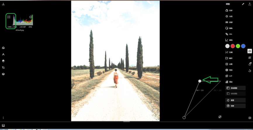 有很多喜欢拍照的用户常常希望给拍摄到的写实照片添加一些朦胧的意境,使自己的照片显得更加梦幻一点。今天我们就来介绍一下使用泼辣修图让画面变得更加梦幻的5个实用小技巧。 泼辣修图使用技巧整理 技巧一:合理使用泼辣修图中的去雾工具。 1、打开泼辣修图,打开任一图片(这里打开一张样本图片)。  2、点击最右侧【调整】图标,然后选择【光效】,在其中找到【去雾】,左右移动竖线标,将去雾值调节为负值(即增加雾气),这样就得到了一个梦幻朦胧的画面。  技巧二:合理使用泼辣修图中的对比度工具 如果你希望画面变得朦胧,就要使画面中的明暗对比不够强烈,因此我们可以利用对比度工具去降低画面的对比度,让画面更加梦幻。 1、还是以这张照片为例。  2、点击最右侧【调整】图标,然后选择【光效】,在其中找到【对比度】,左右移动竖线标,将对比度调节为负值(-100),可以看出比原图要梦幻朦胧。  技巧三:合理使用泼辣修图中的曲线工具。 1、依然是以这张照片为例。  2、分别选中白、红、绿、蓝色曲线,然后根据需要分别将曲线拉动成C形状,这时候照片的对比度就会降低,画面会显得模糊朦胧。  技巧四:巧用曲线左端点法 1、还以这张图片为例,如图,直方图左侧有凸起。  2、可将曲线右端点向左拉动来实现使画面更加朦胧梦幻的目的。  技巧五:合理利用曝光。 1、依旧是以这张图片为例。  2、点击最右侧【调整】图标,然后选择【光效】,将其中【高光】和【白色色阶】降低为-50,将【阴影】和【黑色色阶】提高至+127. 缘起缘灭,缘浓缘淡,不是我们能够控制的。我们能做到的,是在因缘际会的时侯好好的珍惜那短暂的时光。00。 这种方法的本质是通过降低高光与白色色阶、提高阴影与黑色色阶来降低画面对比度效果,从而使画面朦胧梦幻。  以上就是让照片更梦幻的5个实用小技巧,是不是很简单,快去试试吧!了解更多精彩教程资讯,关注wmzhe.com。 -