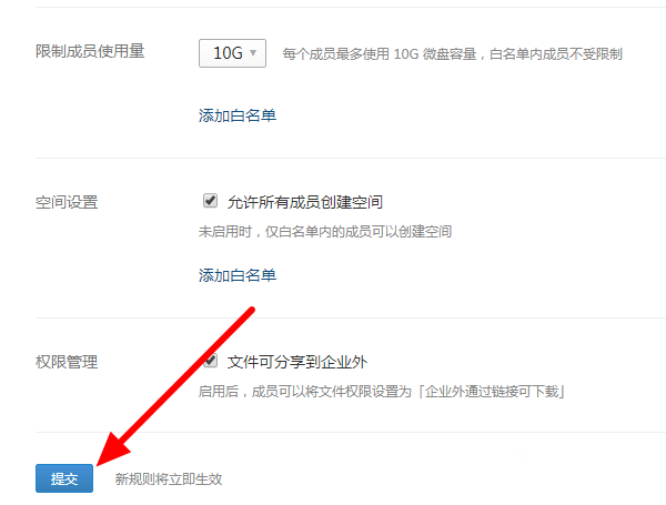 企业微信是大家比较喜欢的一款办公辅助软件,我们平时可以将文件资料保存到微盘,但是,如果群成员随意上传文件,即会导致微盘空间不足。鉴于此,小编建议管理员合理分配成员使用空间,操作方法如下。 企业微信微盘如何分配空间容量? 在电脑中打开企业微信,登录管理员账号,进入界面,如图,点击【登录管理后台】按钮,  进入后台,如图,点击上方的【应用管理】选项,  进入应用管理页面,点击【微盘】,进行微盘管理,点击26. 爱人的离开有的时候其实是正确的选择,与其苟且着互相伤害,不如用残忍的伤害让你放手去寻找自己幸福。【限制成员使用量】,   展开下拉菜单,这里有五个选项,分别是0G、2G、4G、10G和无限制,小编选择的是10G,  设置完成,点击提交,成员空间分配成功。  微盘默认分配的免费空间为100G,一旦超出,用户需要付费扩容。了解更多精彩教程资讯,关注wmzhe.com。 -